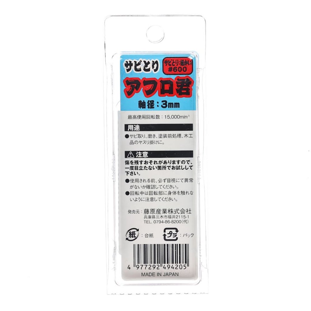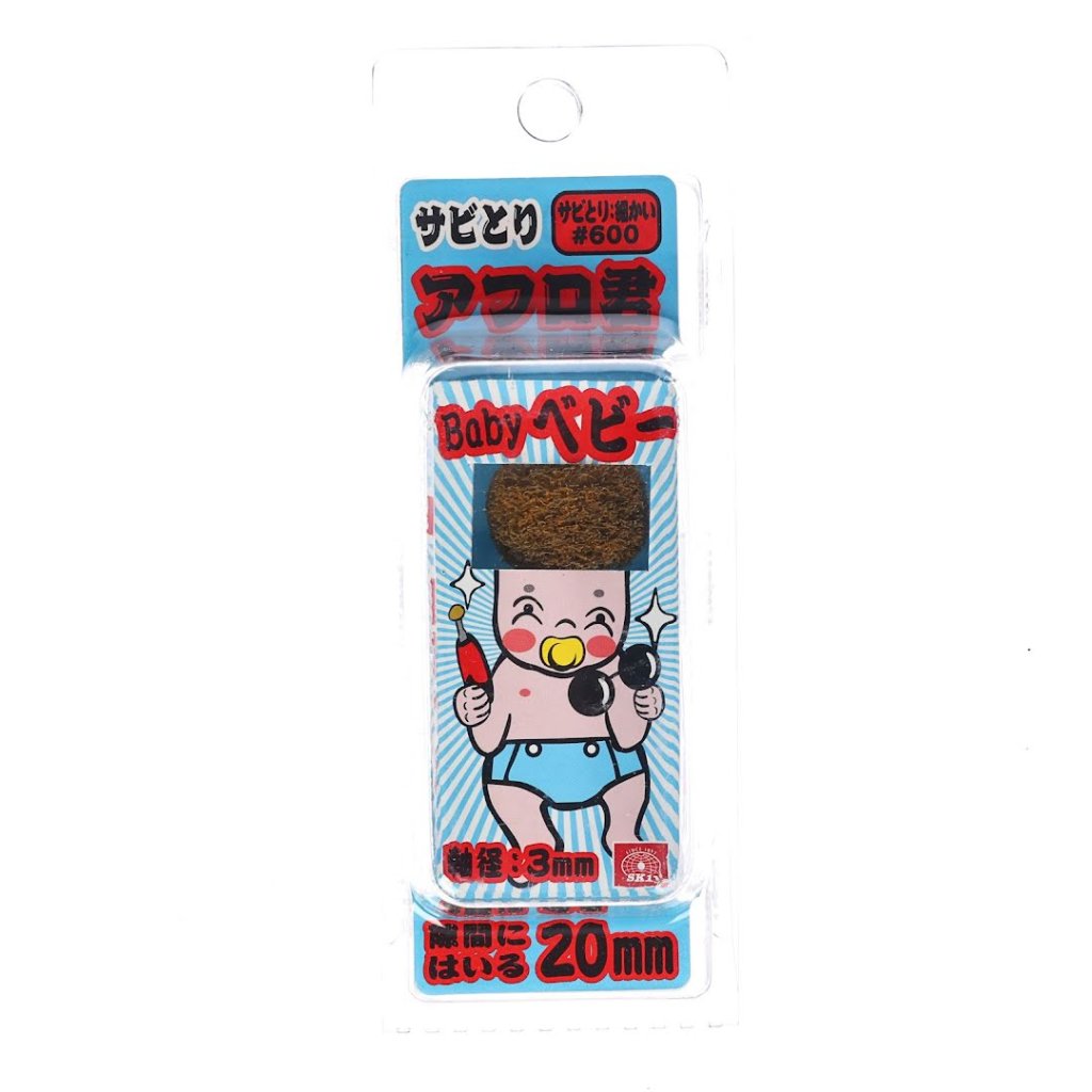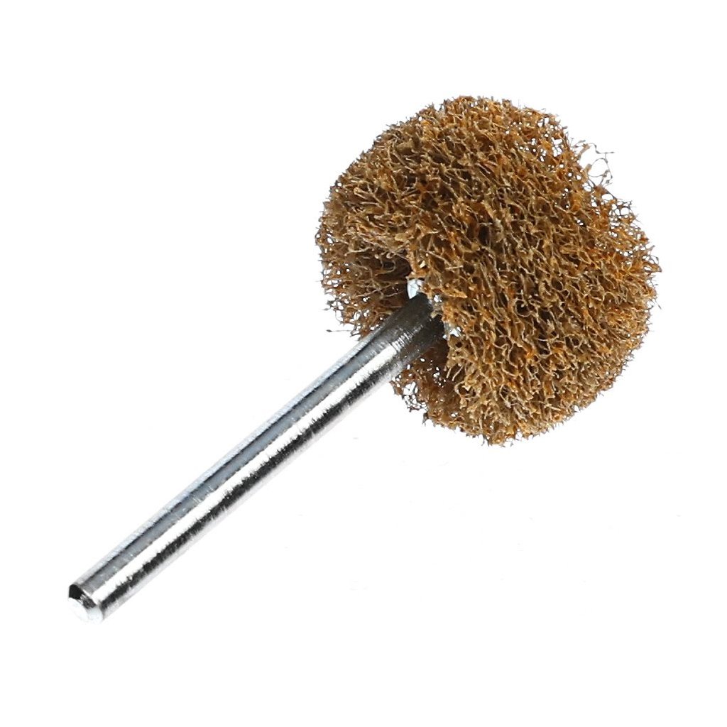 The SK11 Japanese Non-Woven Abrasive Flap Wheel is designed for efficient rust and stain removal with a mini router. With a 20 mm head that fits into tight spaces, it utilizes the router's rotational power to clean persistent rust and dirt. The afro shape ensures optimal contact on various surfaces. This wheel features a 3 mm shank diameter, #600 grit, and a maximum rotational speed of 15000 RPM.