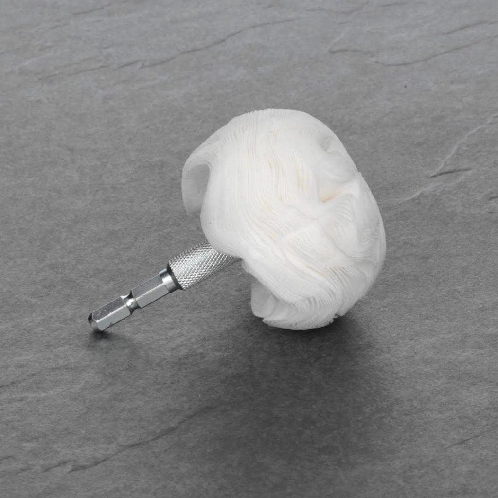 The SK11 Japanese Non-Woven Abrasive Ball Polishing tool is designed for hassle-free polishing with a household electric drill. This versatile tool is perfect for polishing and finishing various materials using liquid or solid polishing compounds, such as metal and wood. Its soft texture ensures it does not cause deep scratches, making it ideal for cleaning and detailing curved surfaces. With a diameter of 70 mm and a hexagonal shaft, it operates optimally at 500-1500 RPM.