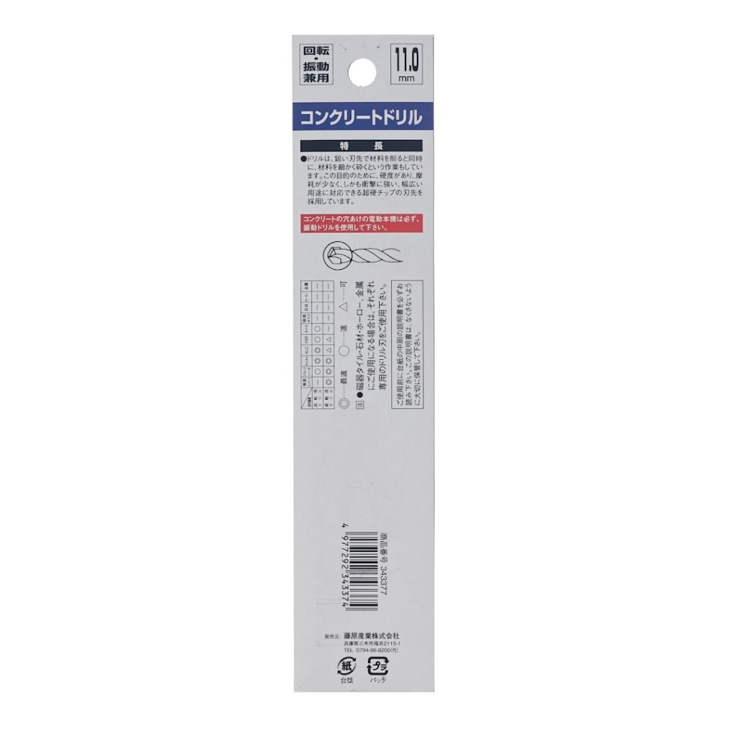 The SK11 Japanese Percussion Drill Bit is ideal for drilling into concrete, mortar, and blocks. This drill features a sharp tip that efficiently cuts and crushes material. It is built with high hardness for reduced wear and increased impact resistance. It has a carbide-tipped edge, making it suitable for various applications. It is compatible with both rotary and percussion drills.