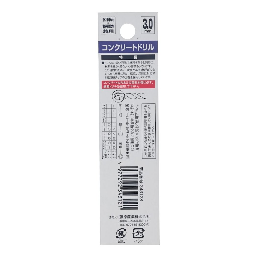 The SK11 Japanese Percussion Drill Bit is ideal for drilling holes in concrete, blocks, and mortar. Featuring a sharp cutting edge that simultaneously chips and crushes material, this drill is made with a durable carbide tip for minimal wear and high impact resistance. Suitable for vibration and rotary drills, it is versatile for various materials, including block bricks, mortar, and concrete.