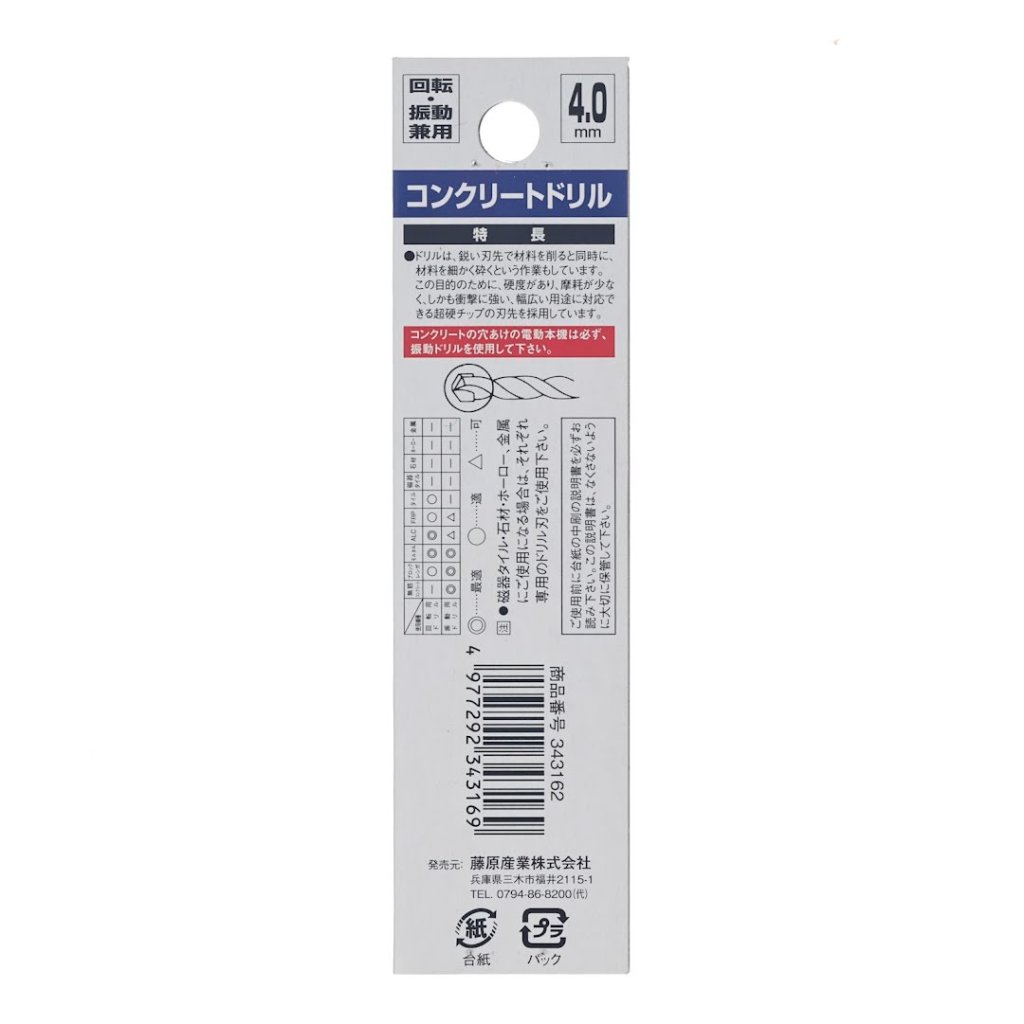 The SK11 Japanese Percussion Drill Bit is ideal for drilling into concrete, blocks, and mortar. This 4.0 mm drill bit features a tungsten carbide tip that ensures durability, minimal wear, and high impact resistance. It is compatible with rotary and percussion drills, making it versatile for various materials. The sharp edge drills and pulverizes the material for efficient operation.