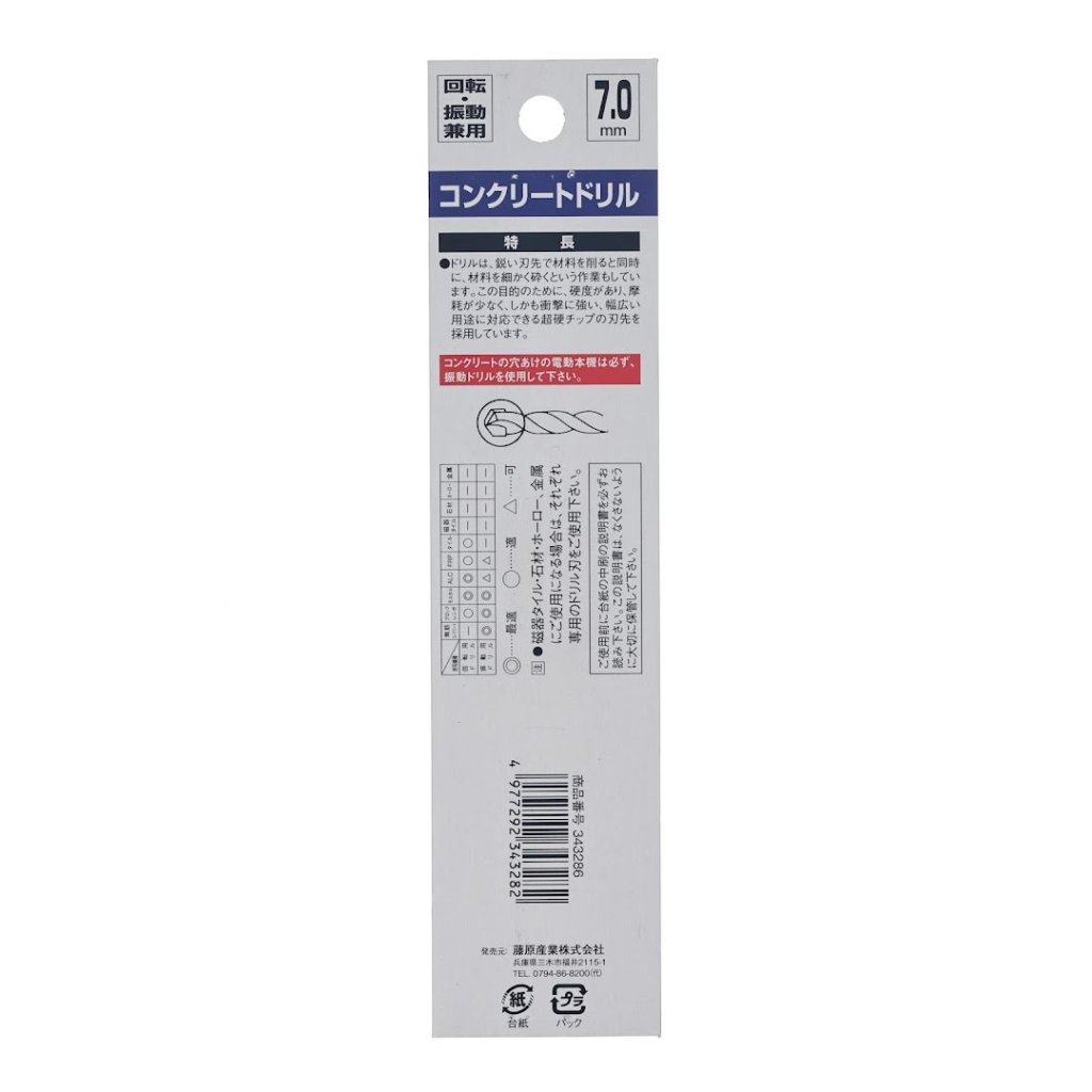 The SK11 Japanese Percussion Drill Bit is a versatile tool for drilling into concrete, blocks, and mortar. With a 7.0 mm diameter, this drill bit utilizes a tungsten carbide tip that ensures minimal wear and high resistance to impact. The sharp edges cut through materials and pulverize them for efficient drilling. Ideal for use with both rotary and percussion drills, this bit is perfect for a wide range of applications, including concrete, mortar, and block drilling tasks.