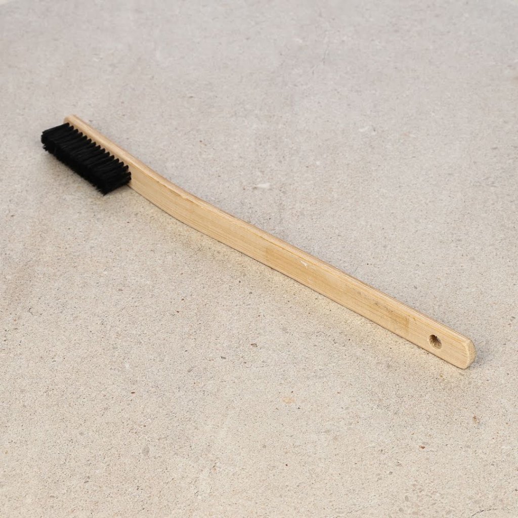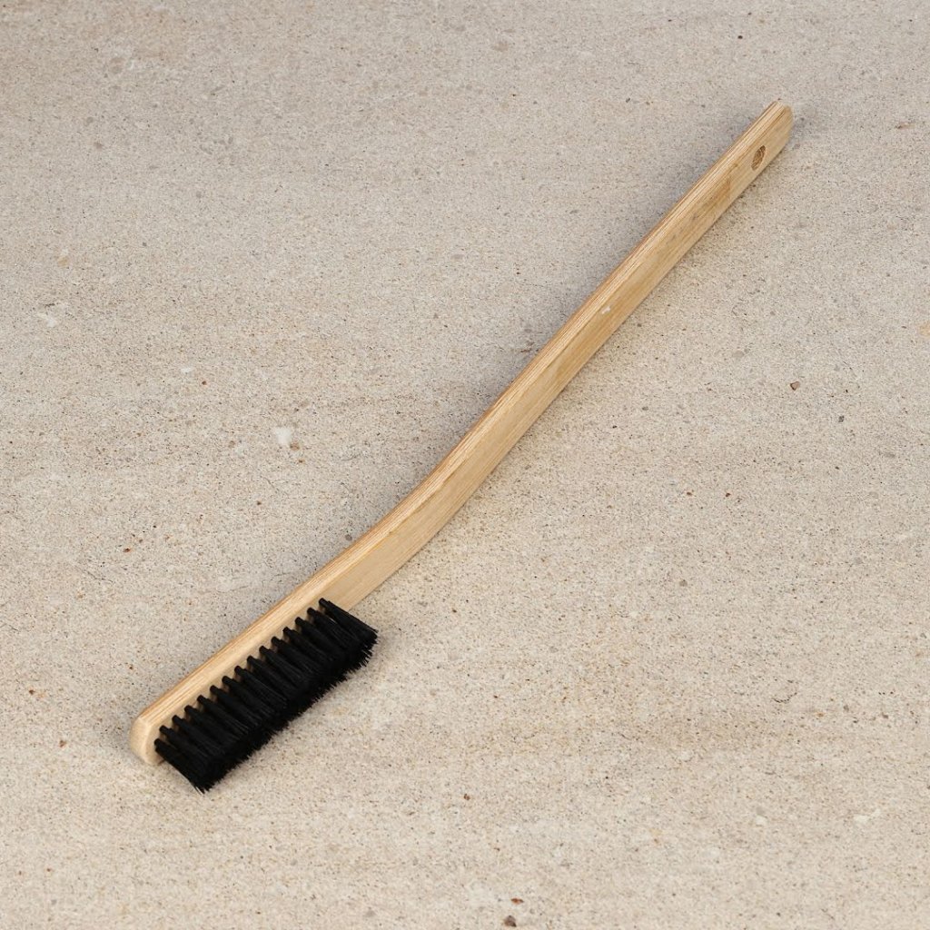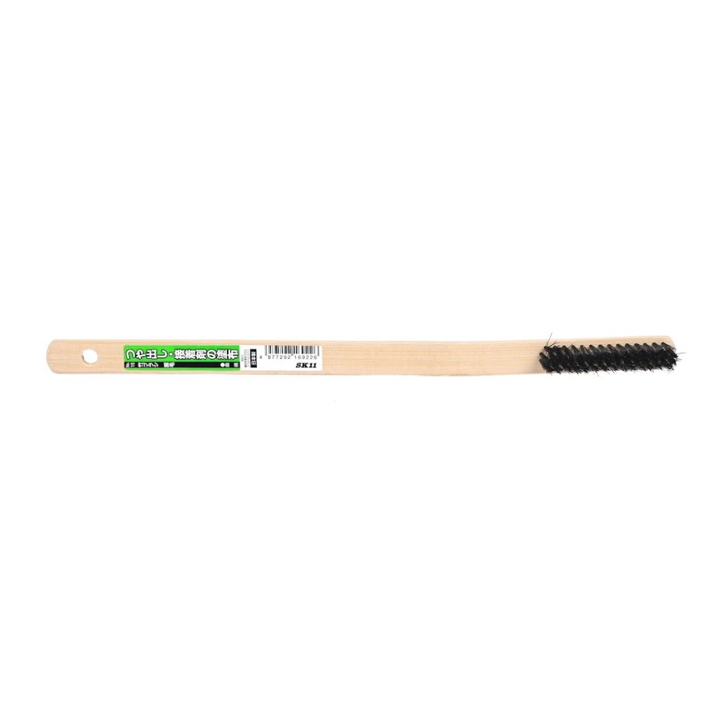 The SK11 Japanese Pig Bristle Brush, model No.16, is ideal for maintaining leather and plated products. Featuring natural pig bristles, this brush excels at polishing, cleaning, and applying adhesives. Its ergonomically curved bamboo handle ensures ease of use during various tasks, such as enhancing wood grain and adding shine to leather. The brush measures 15 mm in width, 295 mm in height, and 22 mm in depth and weighs just 20 g.