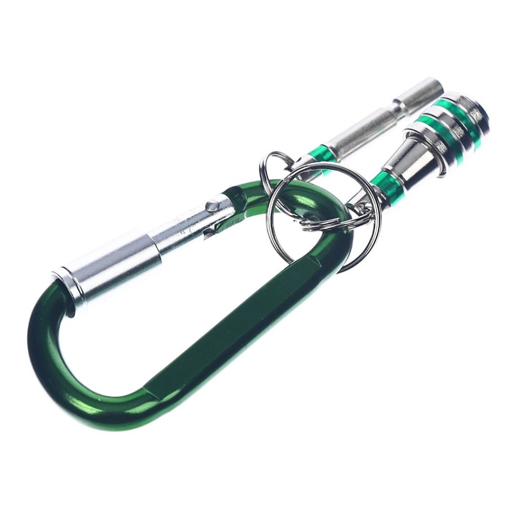 The SK11 Japanese Portable Bit Holder Set securely holds bits and keys with a screw-lock carabiner and quick-release mechanism.