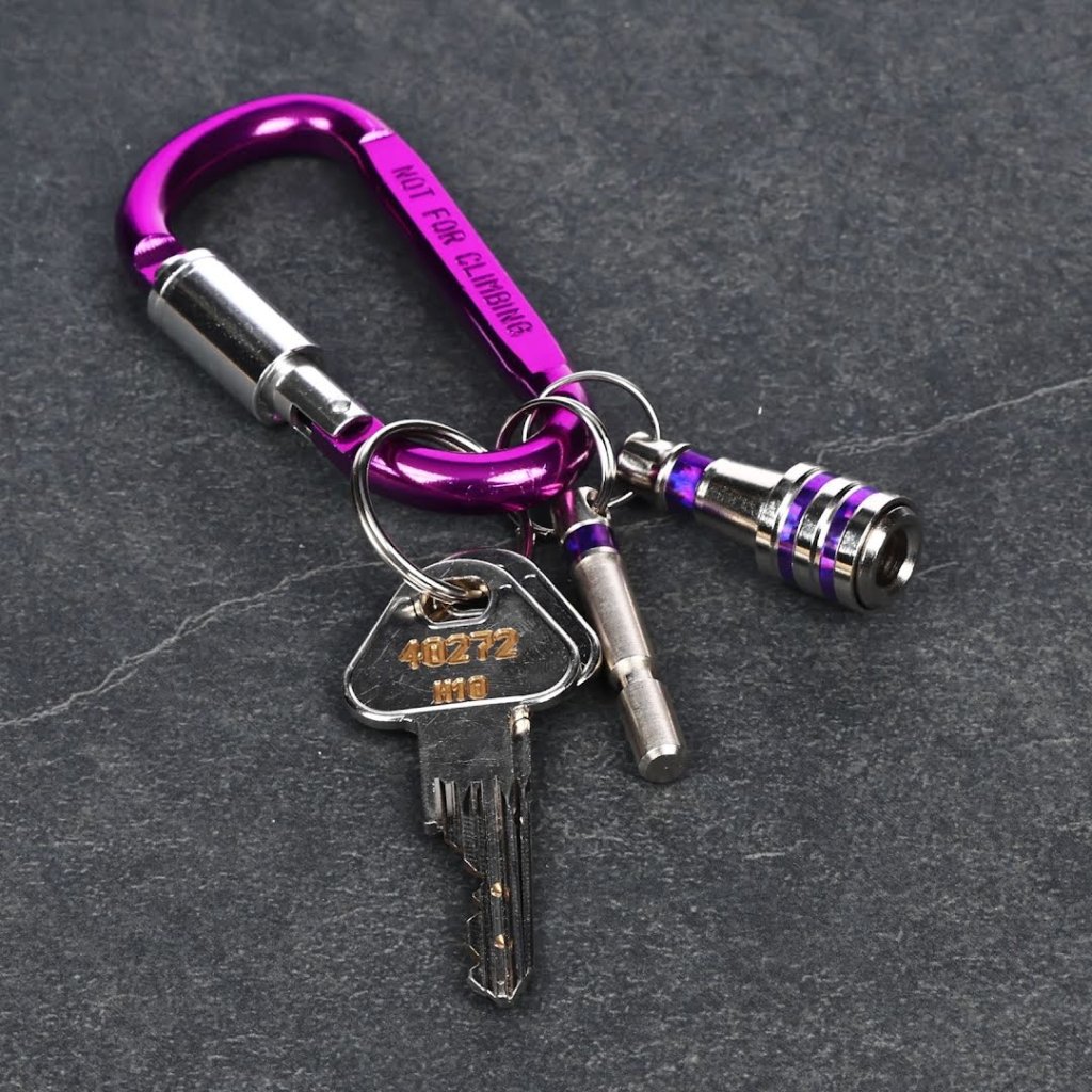 The SK11 Japanese Portable Bit Holder Set securely holds bits and keys with a screw-lock carabiner and quick-release mechanism.