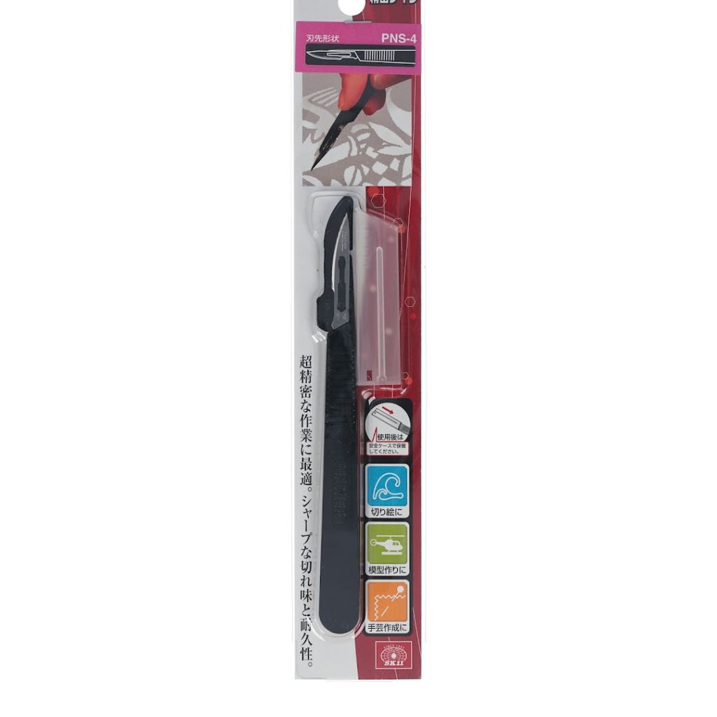 The SK11 Japanese Precision Knife, model PNS-4, is a precision knife manufactured in Japan. It features an ultra-thin blade of just 0.38 mm. Ideal for wax carving and intricate tasks, this tool is adapted from surgical scalpels, ensuring sharpness and durability. The knife measures 5 mm in width, 145 mm in height, and 2 mm in depth, weighing only 8 g. You can choose the blade tip shape according to your specific needs.