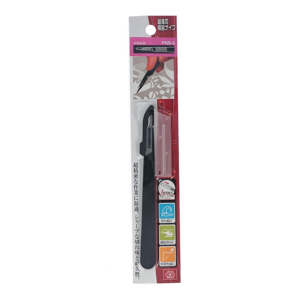 The SK11 Japanese Precision Knife, model PNS-5, is a Japanese-made precision knife featuring an ultra-thin 0.38 mm blade. It is designed by adapting surgical scalpels for hobby use and excels in fine, detailed work such as wax carving. Its sharp cutting edge and durability make it ideal for precise tasks. The knife measures 5 mm in width, 145 mm in height, and 2 mm in depth, weighing just 8 g.