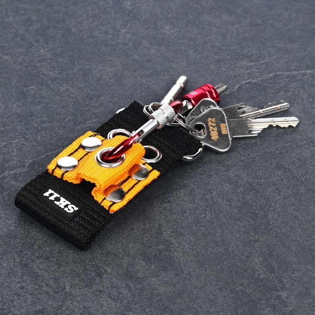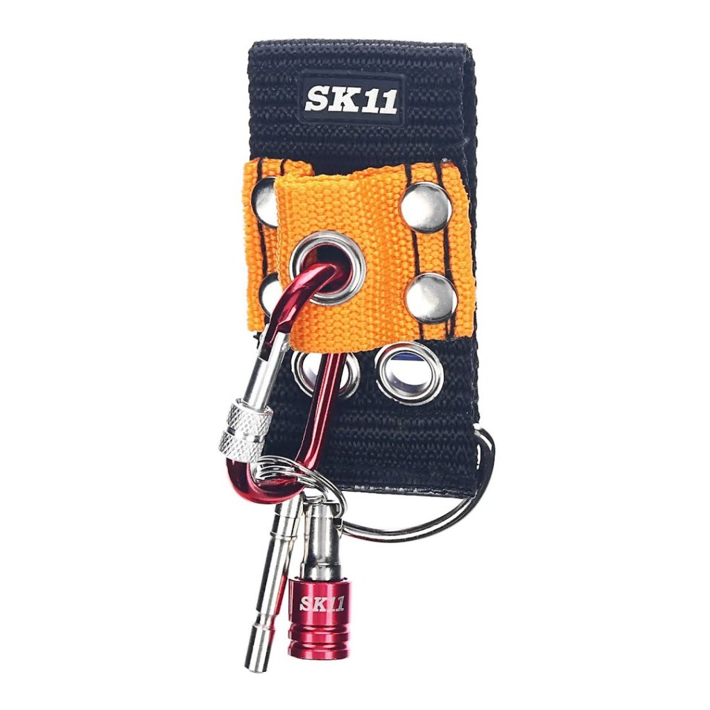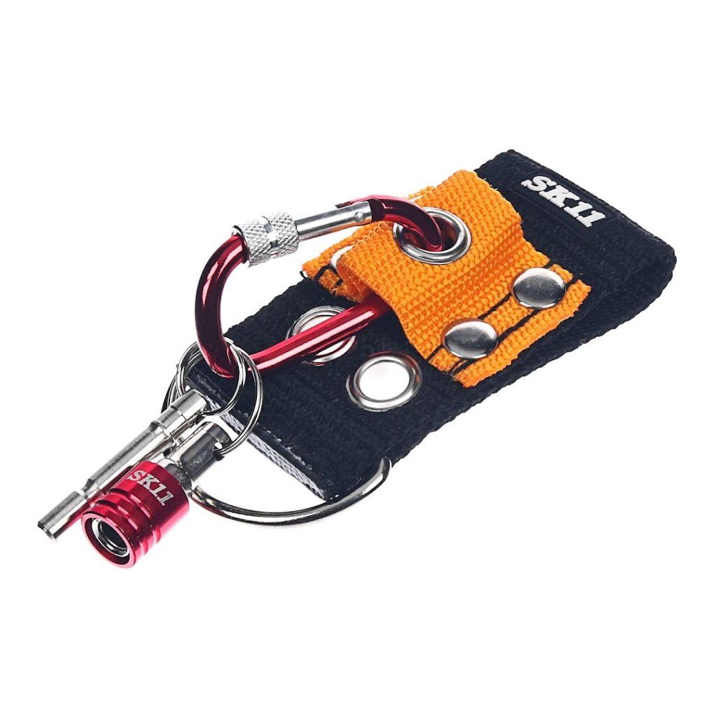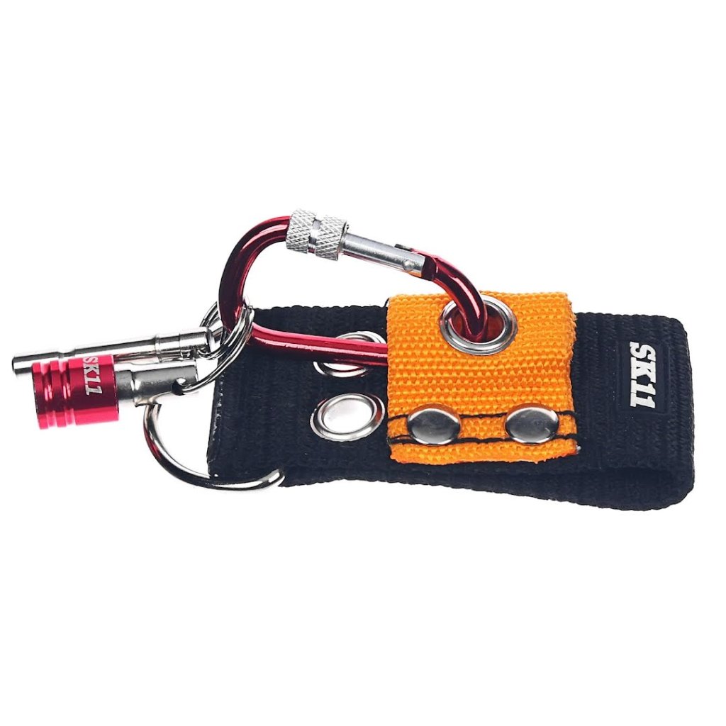 The SK11 Japanese Portable Bit Holder Set securely holds bits and keys with a screw-lock carabiner and quick-release mechanism.