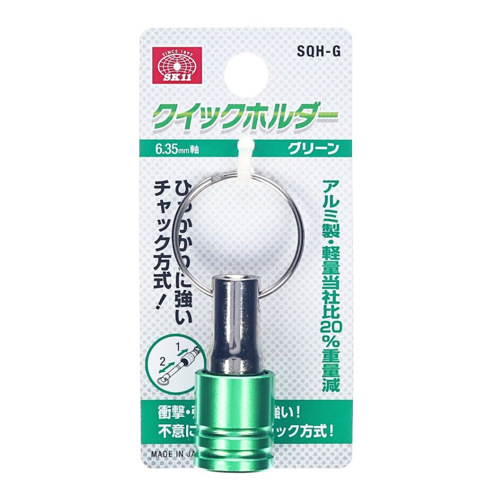 SK11 Japanese Quick Release Bit Holder with Key Ring, Green - SQH-G