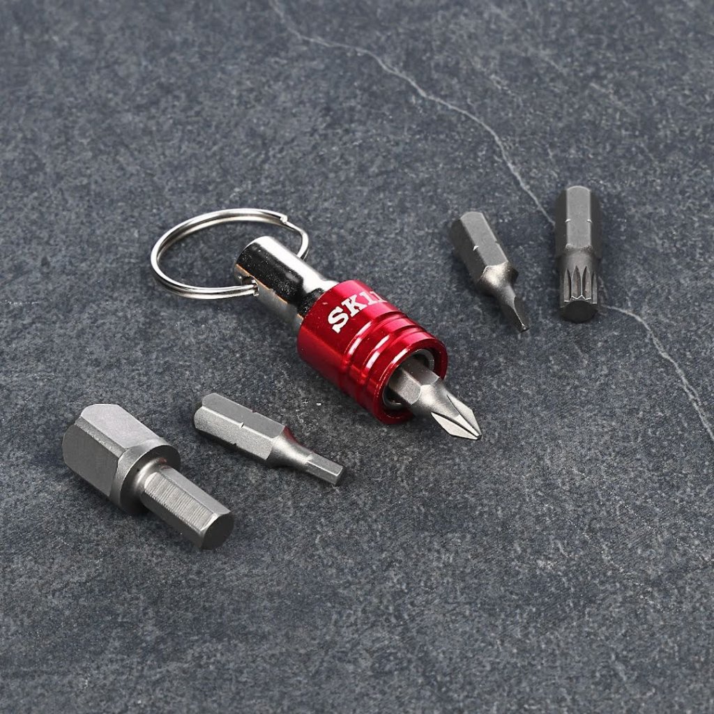 The SK11 Japanese Keychain Bit Holder is durable and prevents bit loss. Compatible with 6.35 mm shanks. Made in Japan.