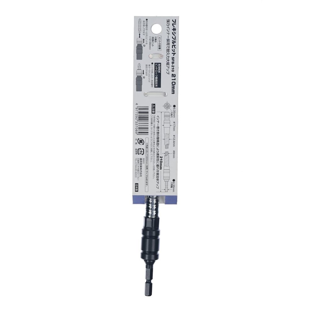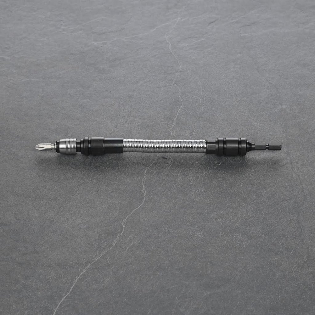 The SK11 Japanese Quick Release Flexible Extension Bit Holder, model SFB-210, is designed to make screw-driving tasks in tight and confined spaces easier. With its flexible 8-layer steel shaft, this tool can bend and reach screws in hard-to-access areas. Its strong inner core significantly enhances durability, ensuring long-lasting usage. Additionally, the bit holder features a bit-lock mechanism to reduce bit slippage. Measuring 210 mm in length, this bit holder is a versatile addition to any toolbox.