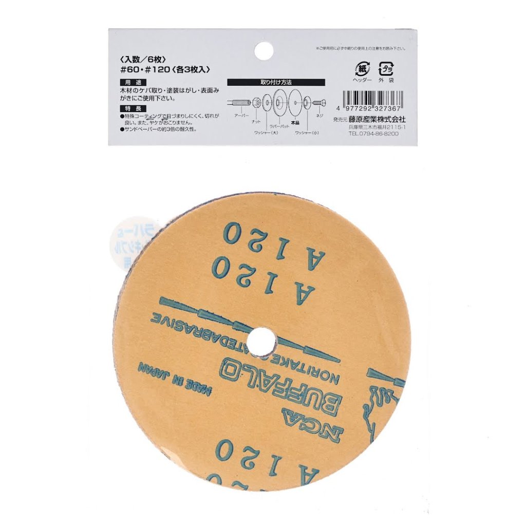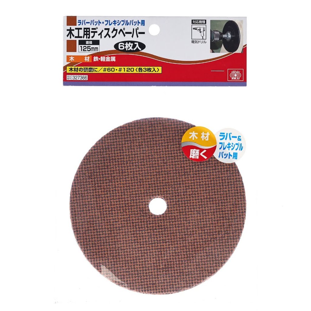 The SK11 Japanese Sandpaper Discs are designed for efficient wood sanding, paint removal, and surface polishing. This product ensures smooth, clean cuts with a special coating that reduces clogging and burning. It is highly durable, offering approximately three times the lifespan of standard sandpaper. Each pack contains six 125 mm discs compatible with electric drills and suitable for use with rubber and flexible pads.