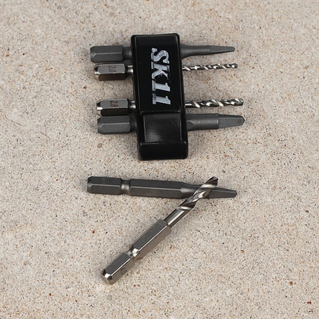 The SK11 Japanese Screw Extractor Bit Set is designed for the effortless removal of broken bolts embedded in holes. This versatile set includes six pieces with hex shanks measuring 6.35 mm, ensuring compatibility with both forward and reverse rotation electric drills and tap handles. Each bit is tailored for specific bolt sizes, ranging from 5 mm to 11 mm, and includes corresponding pilot drills for efficient operation. Ideal for heavy-duty applications, this set enhances productivity, making it an essential addition to any toolbox.