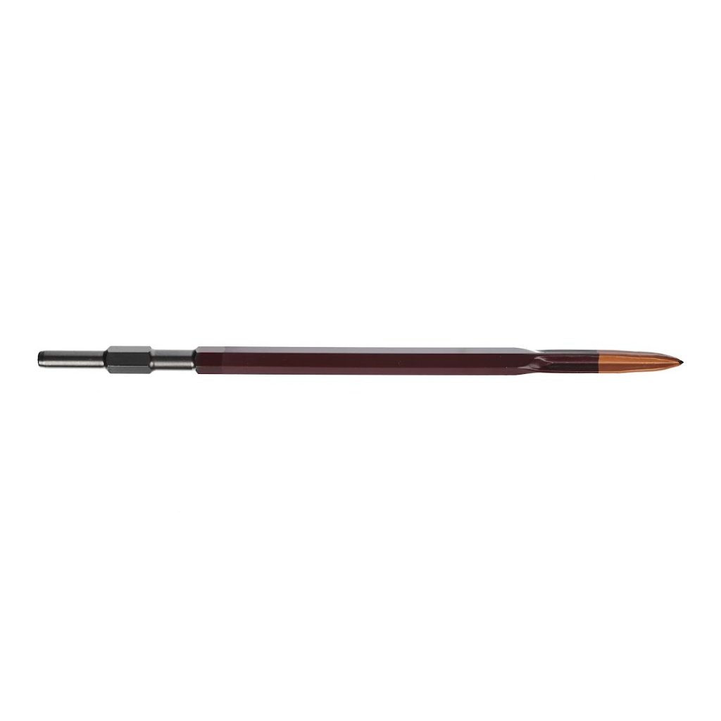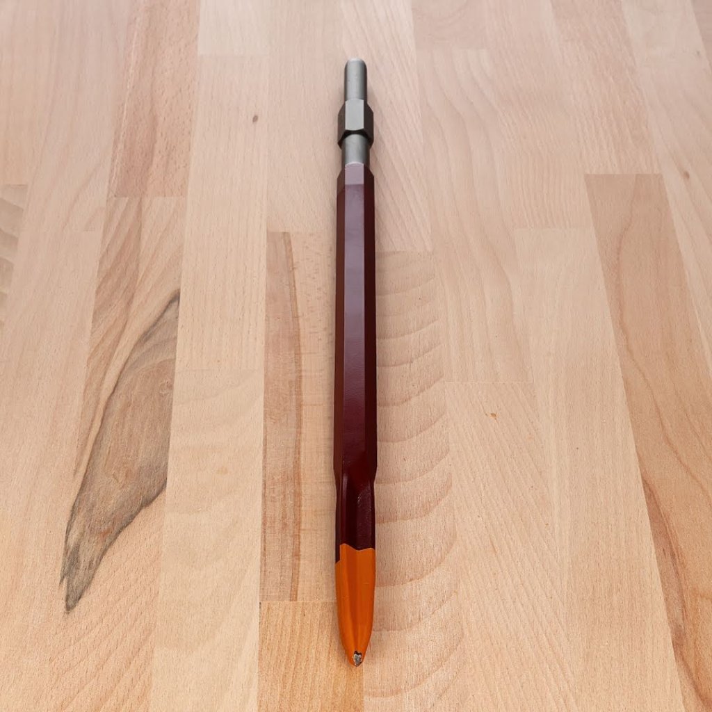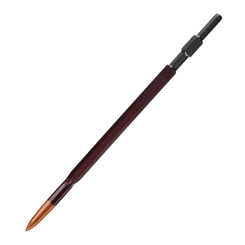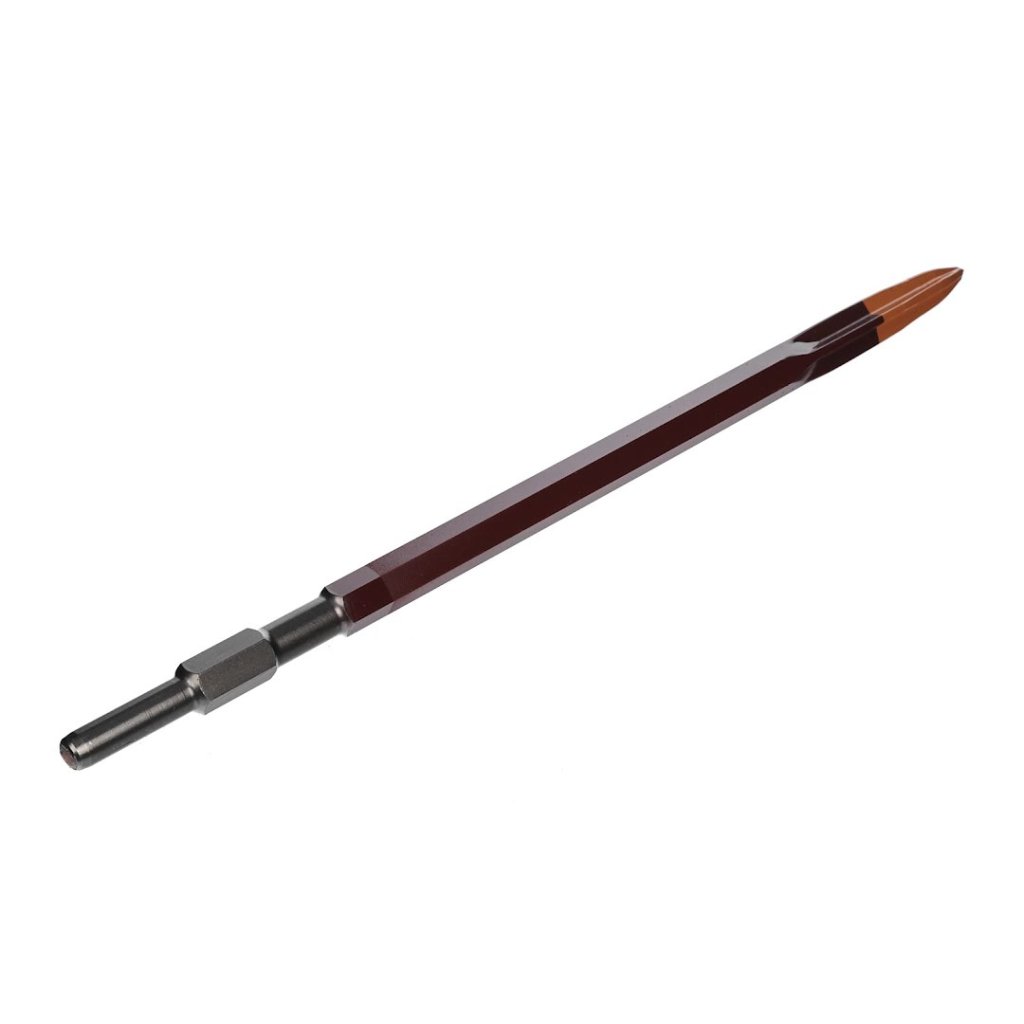The SK11 Japanese Self-Sharpening Bull Point Chisel is designed for efficient concrete chiseling work. Featuring a cross-shaped tip, this chisel ensures an excellent grip on materials, enhancing precision. Its 12 cm edge length is 3.5 times longer-lasting than traditional models. The offset grindstone allows for easy sharpening, and the durable tip maintains its shape without needing repairs. Ideal for demanding construction tasks, this tool measures 17 x 450 mm and weighs 660 g.