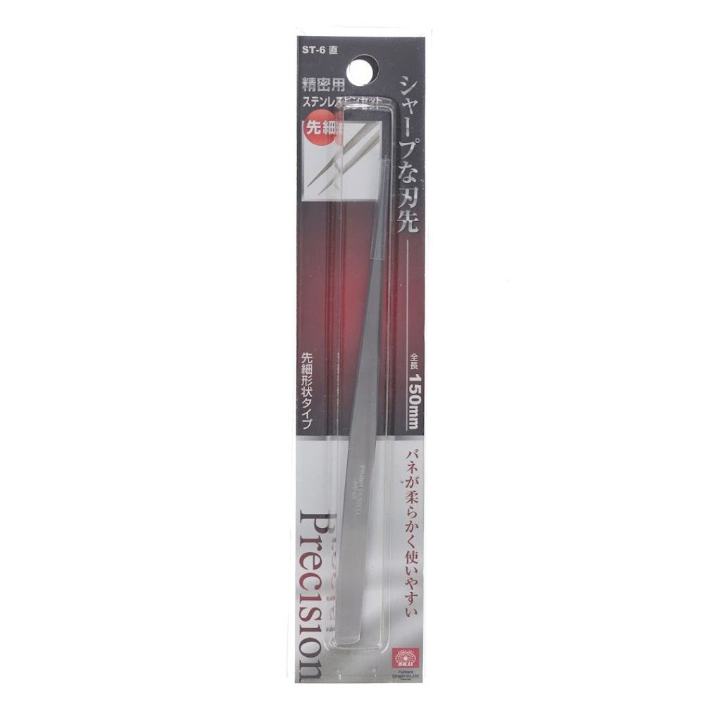 The SK11 Japanese Sharp Straight Tip Precision Tweezers, model ST-6, are designed for precision work in fine product processing, hobbies, models, and crafts. With a straight, fine-tip design, these tweezers provide excellent control for delicate tasks. The soft spring mechanism ensures ease of use, making them suitable for extended use without hand fatigue. These tweezers are lightweight and easy to handle, measuring 150 mm long and weighing just 15 g.