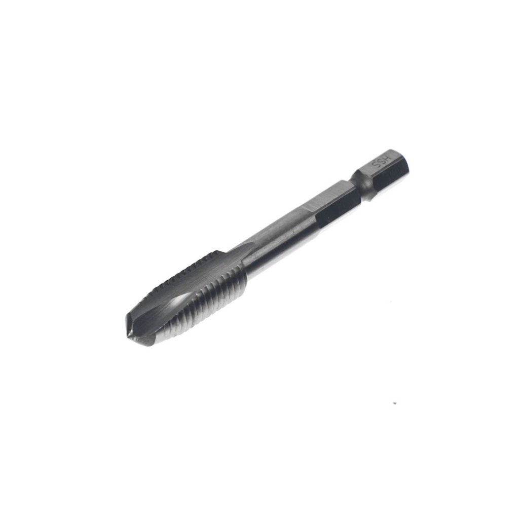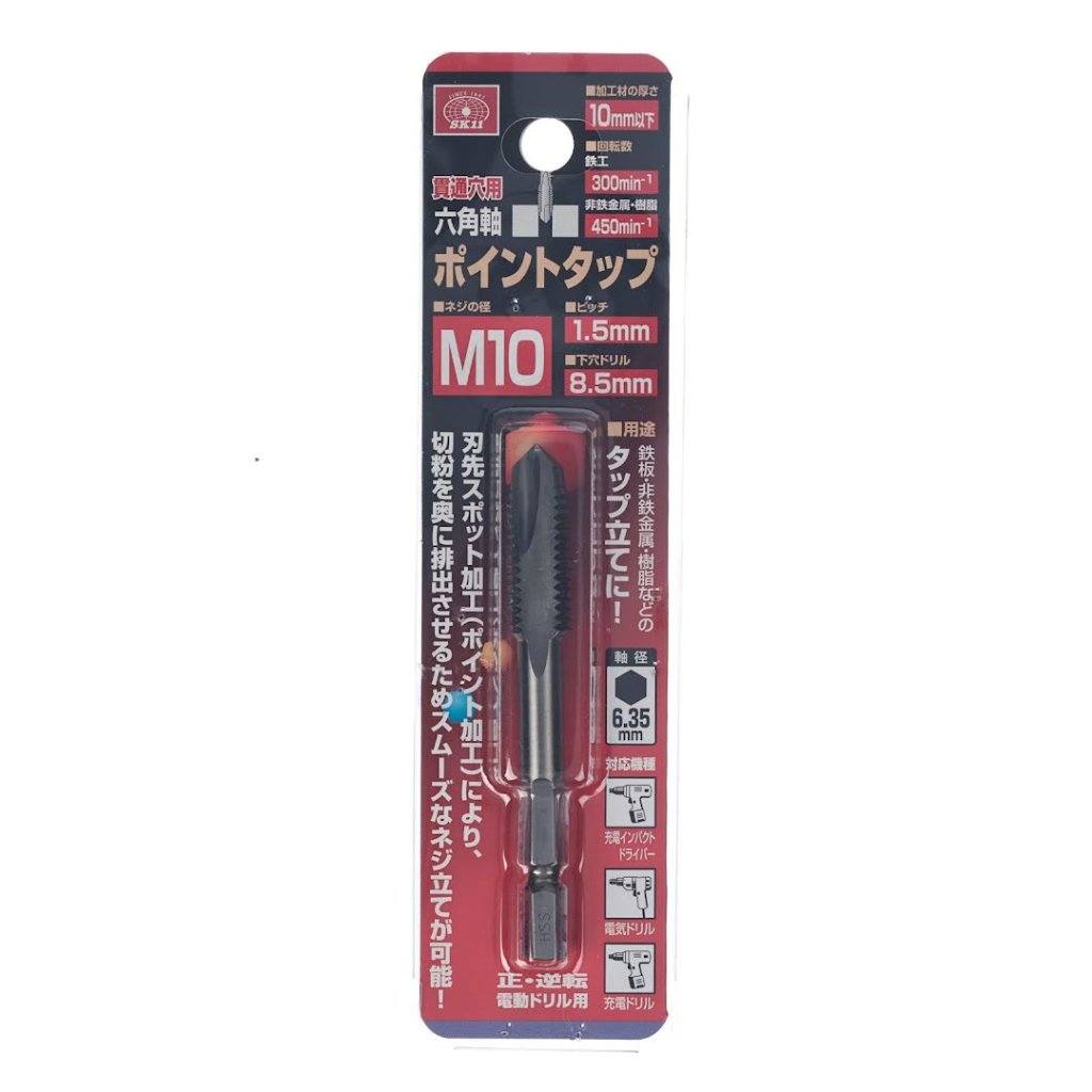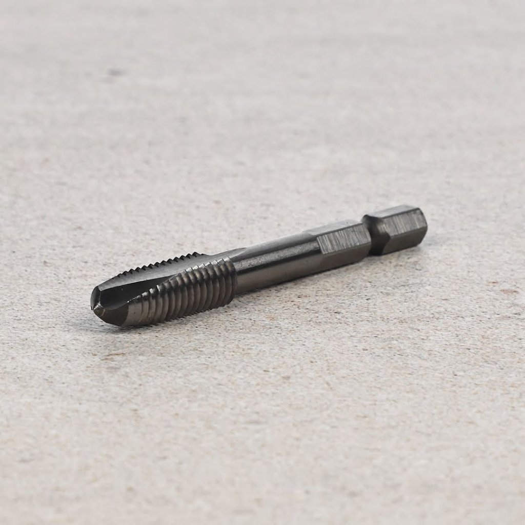 The SK11 Japanese Split Point Drill and Tap Bit is designed for smooth thread cutting with minimal chip clogging, thanks to its precisely processed tip. This hex-shank type bit is perfect for electric tools, ensuring excellent bite at the cutting edge. It is ideal for through-hole applications and requires a pre-drilled hole before threading.