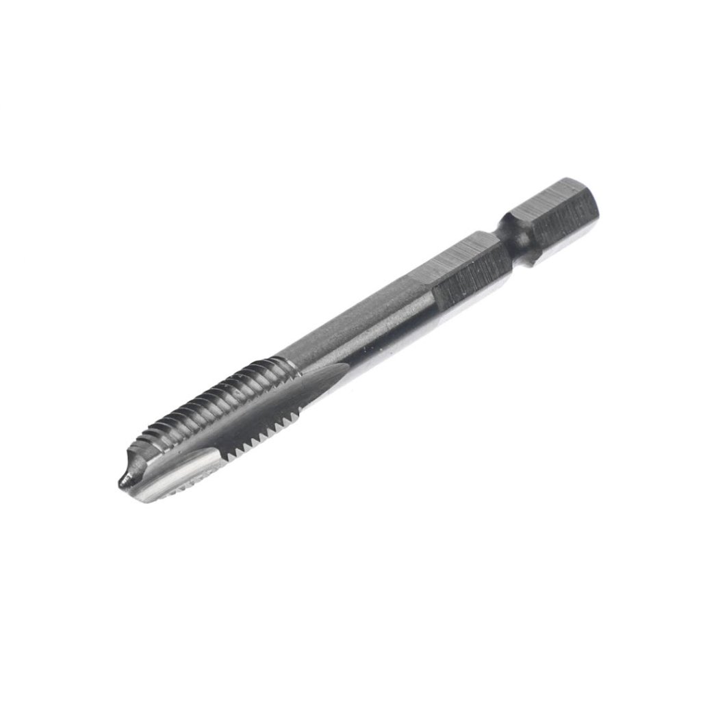 The SK11 Japanese Split Point Drill and Tap Bit is designed for smooth and efficient threading in drilling tasks. Its hexagonal shank makes it compatible with power tools, ensuring versatility and convenience. The bit features a special split point tip that helps expel chips smoothly, reducing clogs during the tapping process. Ideal for through-hole applications, this tool measures M8 x 1.25 mm and weighs 20 g.