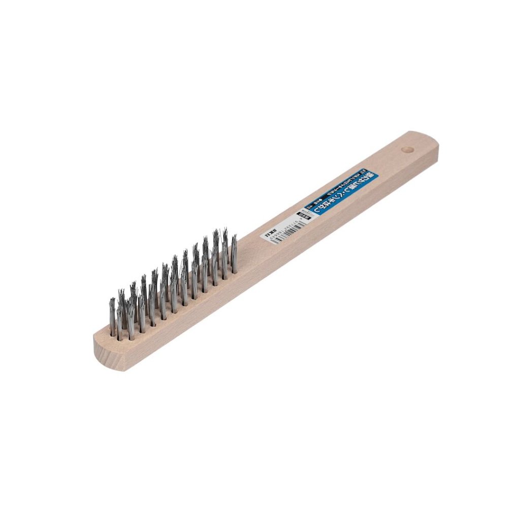 SK11 Japanese Stainless Steel Wire Brush with Wooden Handle, 4 Rows - No.112
