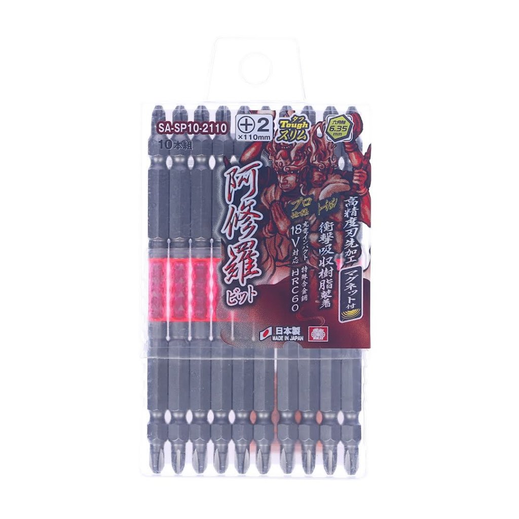 SK11 Japanese Super Ashura Double End Torsion Screwdriver Bit, Slim - 10 pcs - PH2 - 110 mm