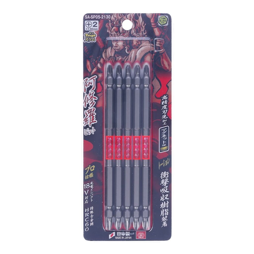 SK11 Japanese Super Ashura Double End Torsion Screwdriver Bit, Slim - 5 pcs - PH2 - 130 mm