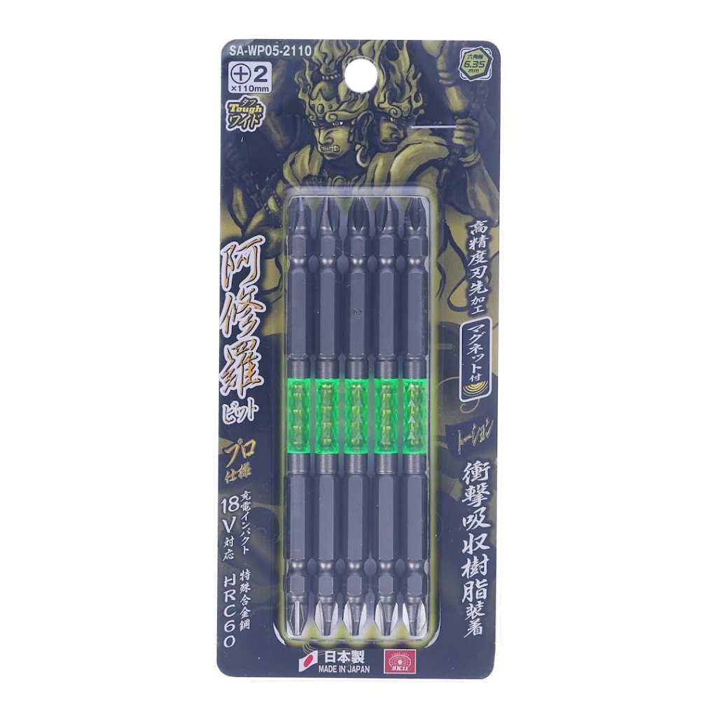 SK11's Japanese Super Ashura durable bits excel in precision fastening with shock-absorbent tech, which is ideal for heavy-duty tasks. Made in Japan.