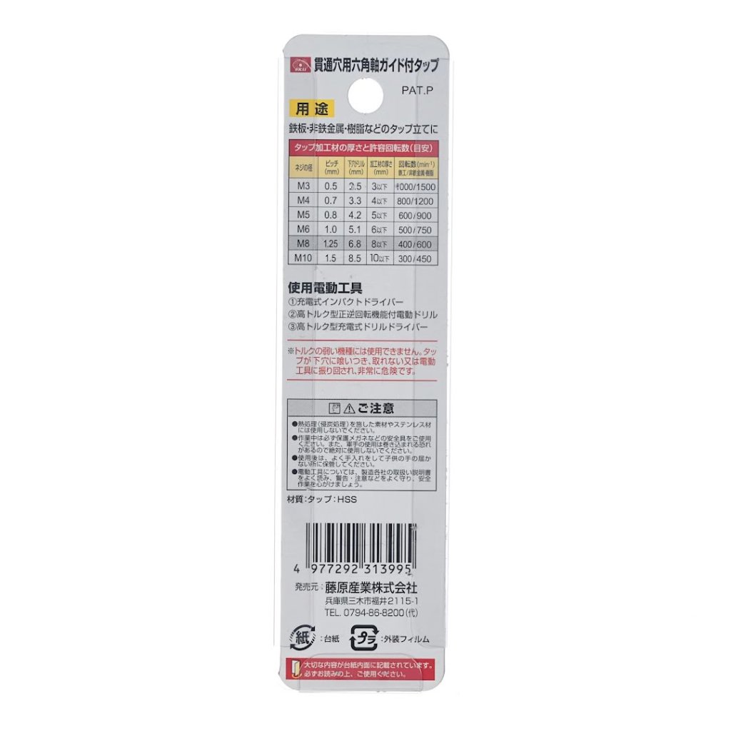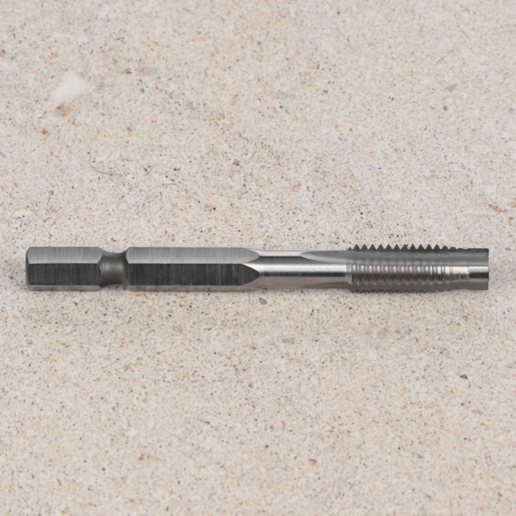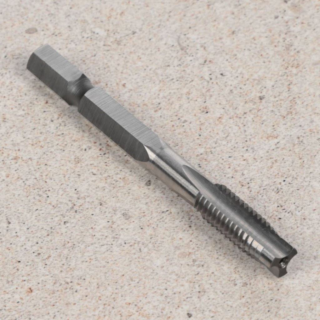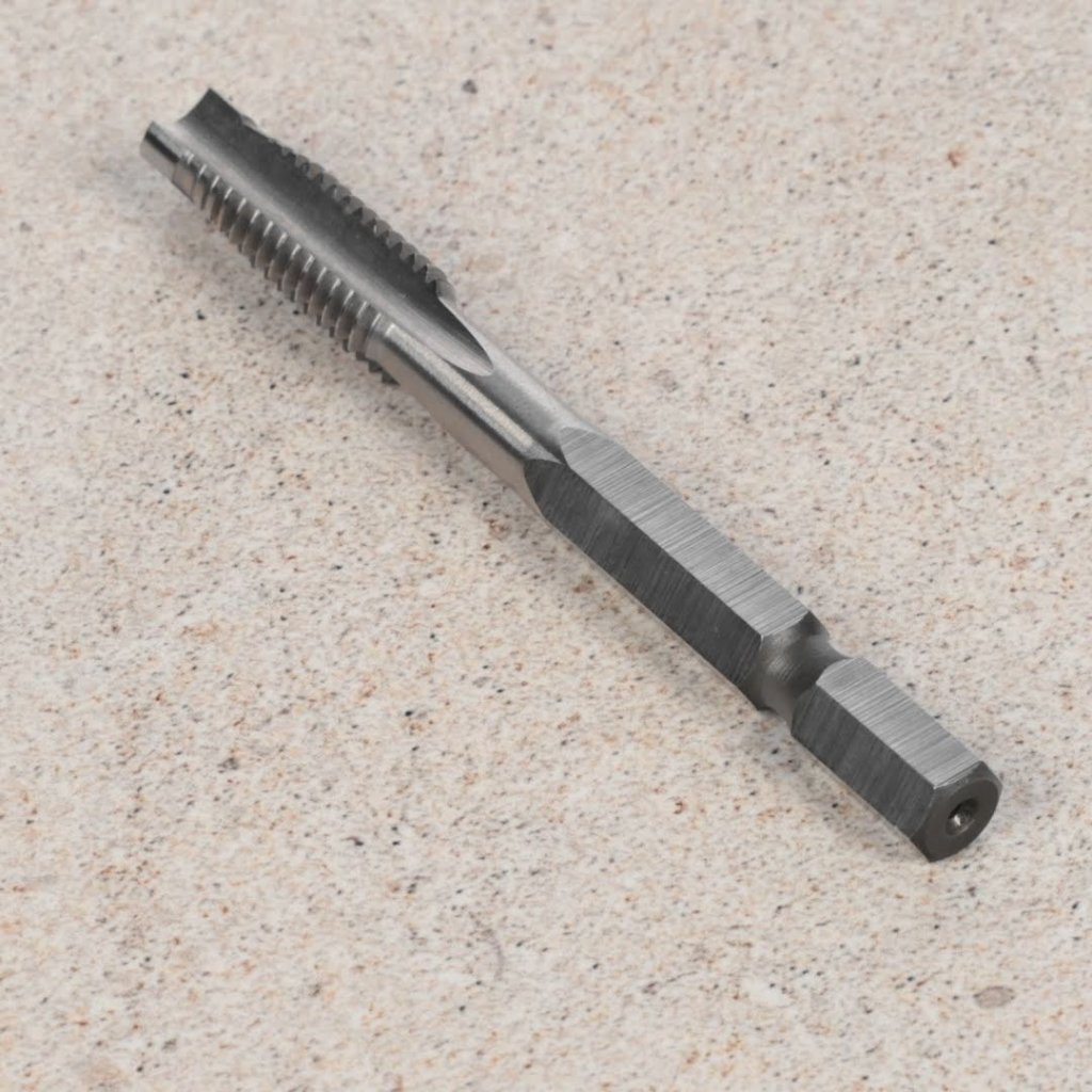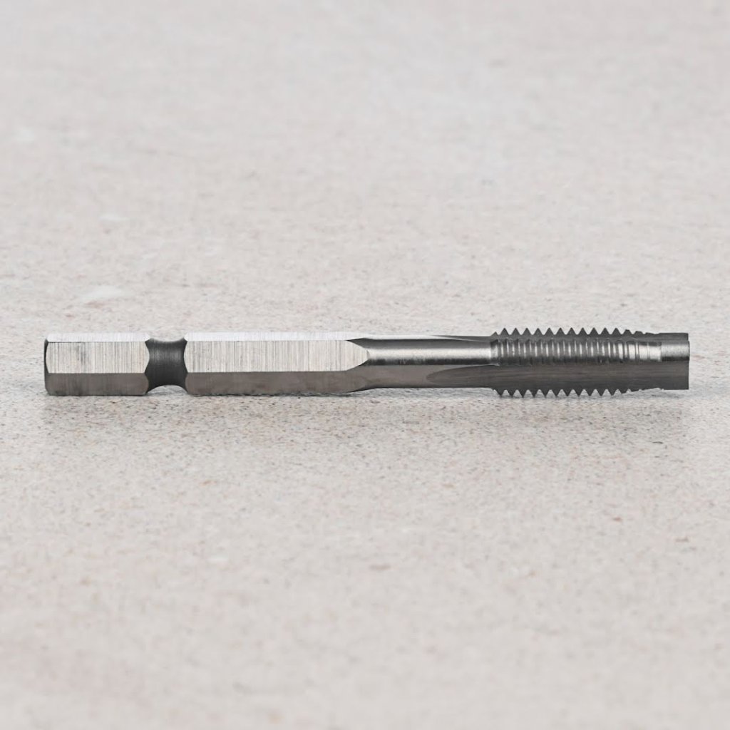 The SK11 Japanese Tap Bit with Guide is designed for precise threading tasks. With a hexagonal shank that fits most power tools, this tap bit ensures stable and accurate threading without bending. It is made explicitly for through-hole applications and has a size of M8 x 1.25 mm. The tool measures 8 mm in width, 72 mm in height, and 8 mm in depth and weighs 18 g. Please ensure to create a pilot hole before threading.