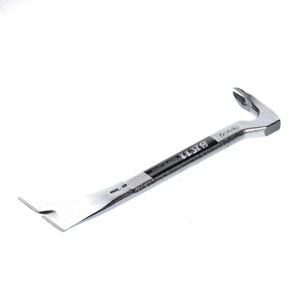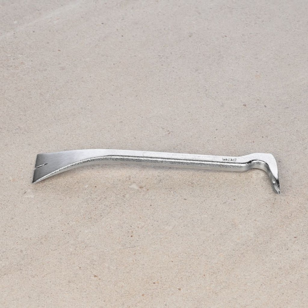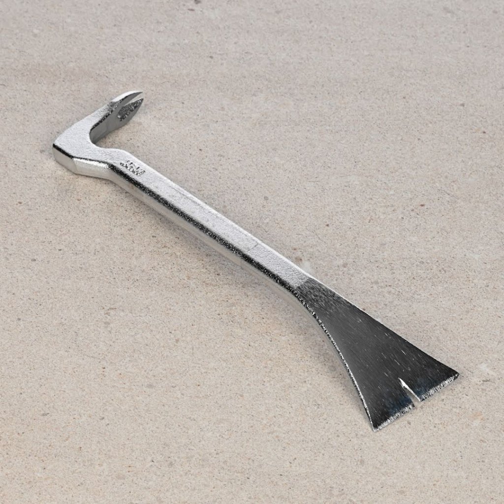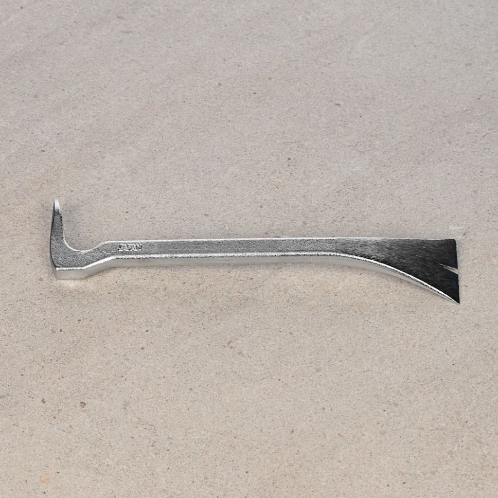 The SK11 Japanese Tilt Head Claw Nail Puller, model CN-15, is designed for efficient framing and interior work. Its chrome-plated finish resists rust and prevents staining on surfaces like wallpaper. The angled head allows easy nail removal from tight spots, while the V-shaped design facilitates effortless nail extraction. Made from special alloy steel, this tool offers exceptional durability and strength, ensuring it performs well under demanding conditions.