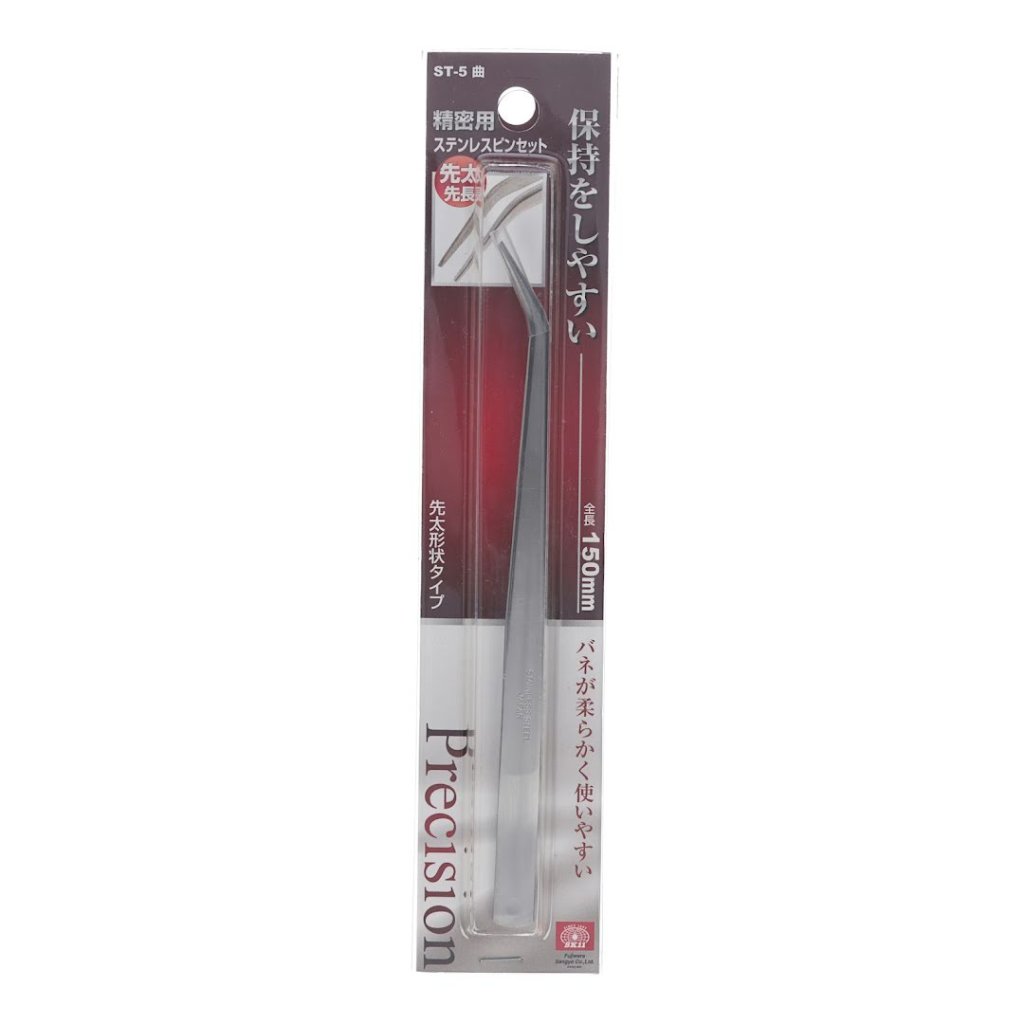 The SK11 Japanese Wide Curved Tip Precision Tweezers, model ST-5, are crafted for precision work in hobbies, models, and crafts. These tweezers feature a curved tip and a wide grip for easy handling. With a total length of 150 mm, they are designed for delicate tasks, ensuring excellent control and ease of use.