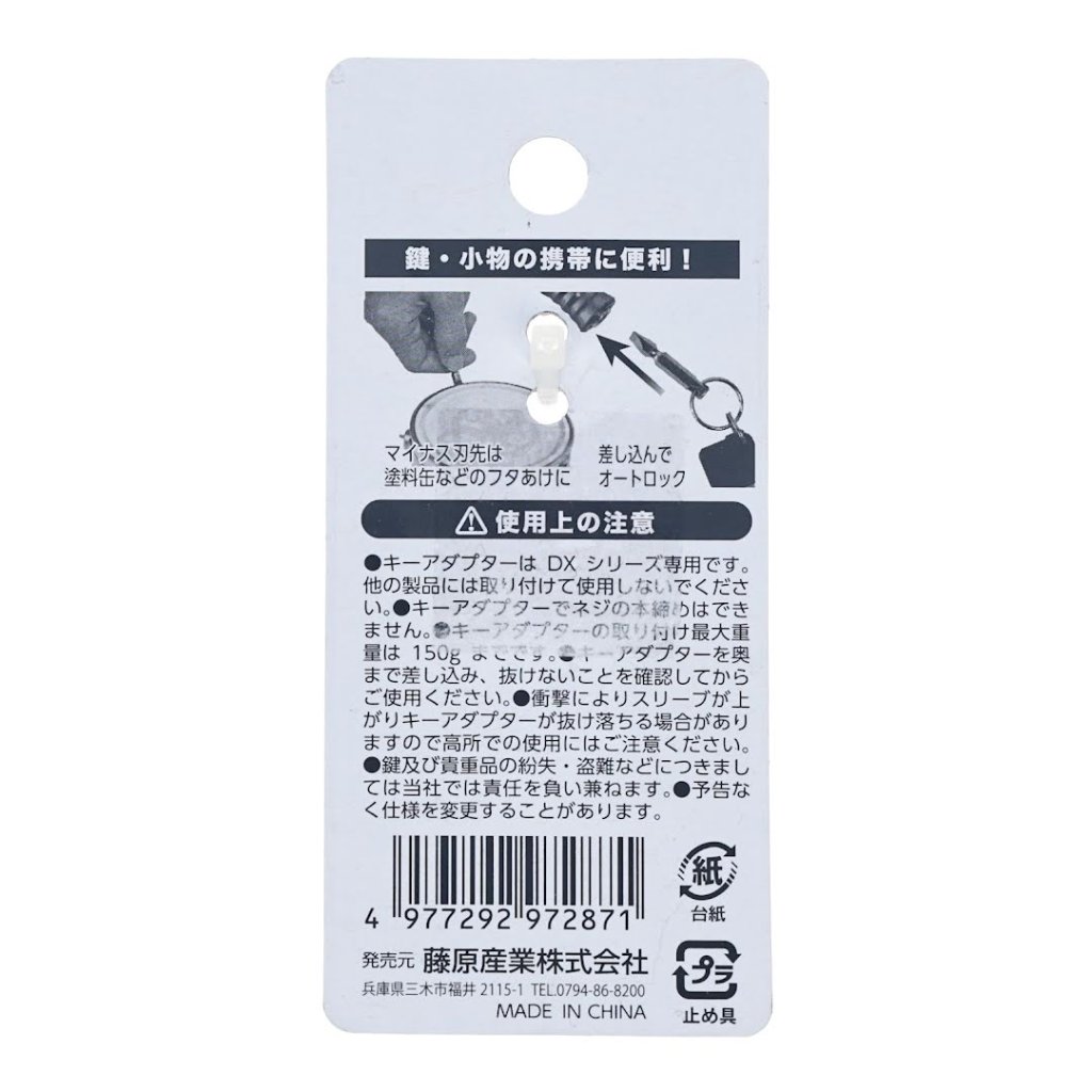 The SK11 Key Adapter, model SKA-DX-AD, is a versatile adapter that connects to a bit holder for carrying keys and small items. With a size of 20 mm width, 65 mm height, and 20 mm depth, it weighs just 12 g. The flat blade tip can be used for minor prying tasks. Note that this key adapter is exclusive to the DX series and supports a maximum weight of 150 g.