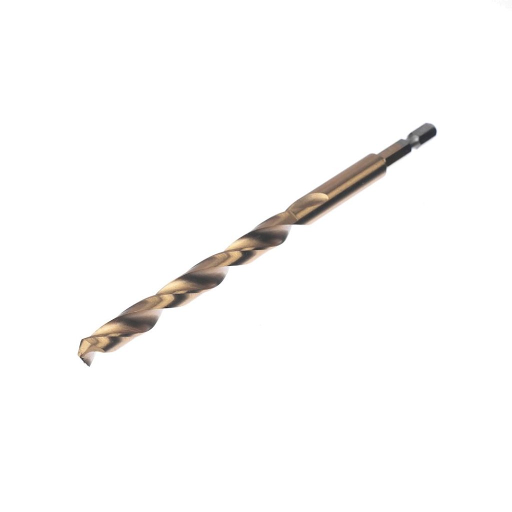 The SK11 HSS-Co Drill Bit is 50 mm long and 9.0 mm in diameter. It is Ideal for stainless steel and has a hex shank and an MCE tip.