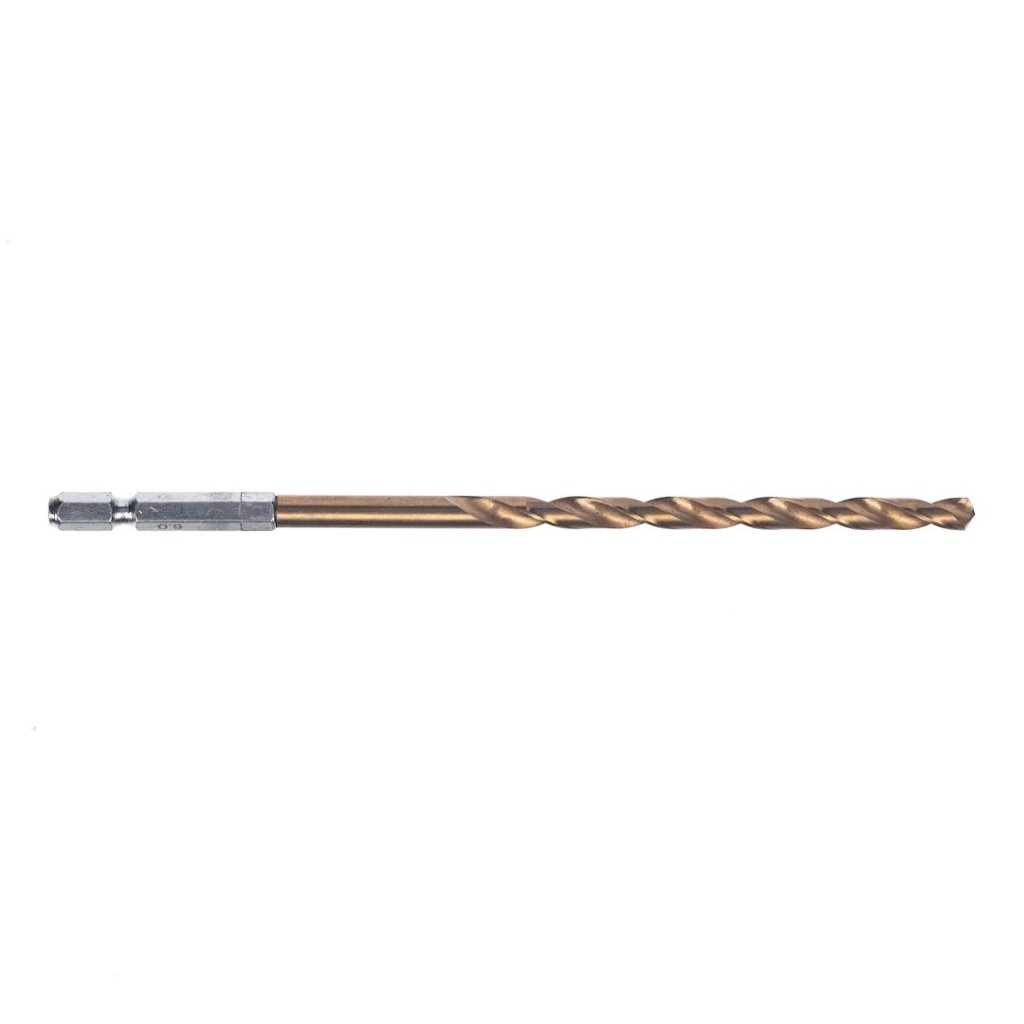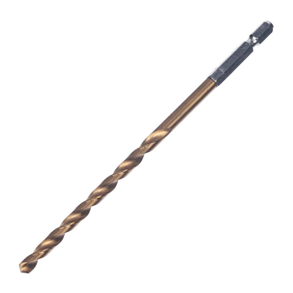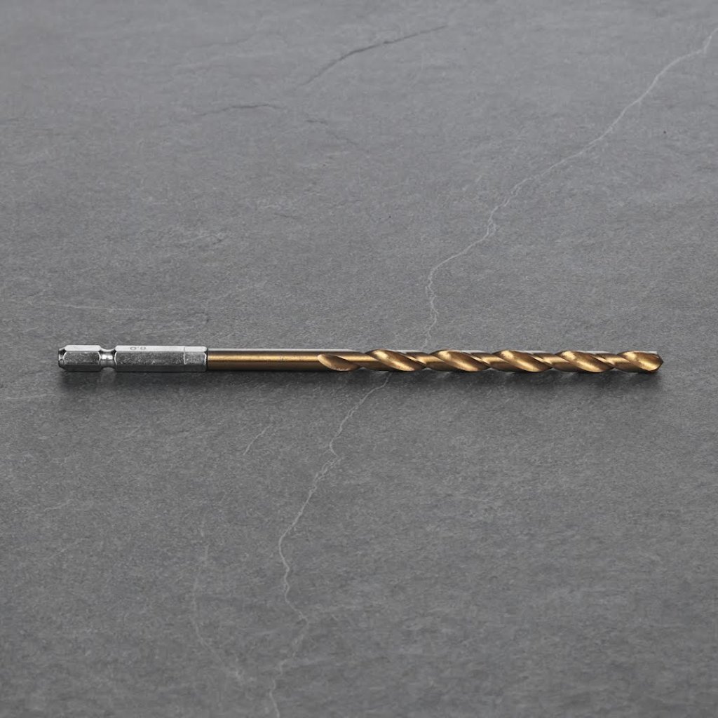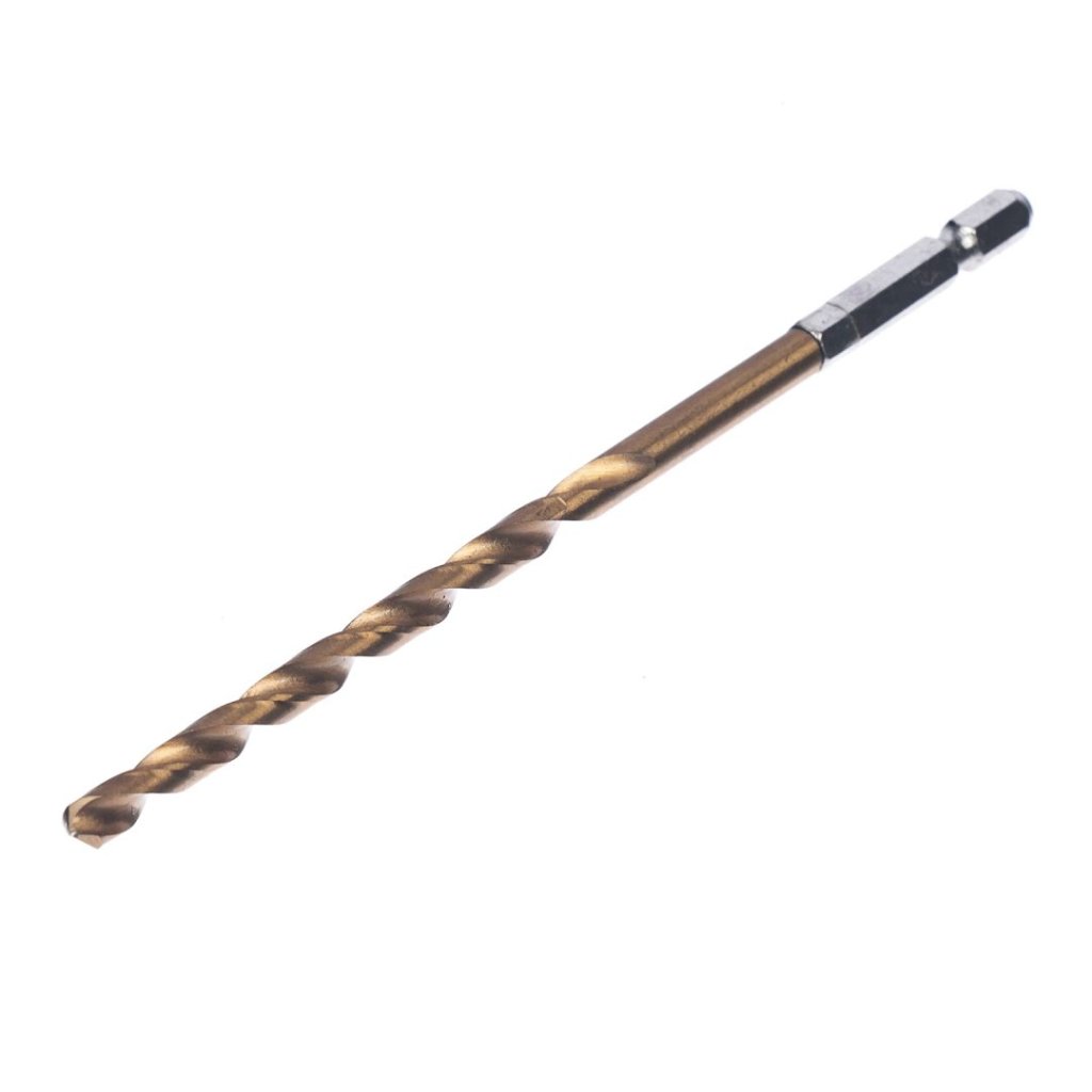 The SK11 Long TiN-Coated Metal Drill Bit is ideal for precise drilling in iron, wood, resin, and light metals. This high-speed steel (HSS) drill bit is coated with titanium (TiN) for enhanced heat resistance and longevity. Its hexagonal shank allows for secure attachment to impact drivers and drill chucks. The cross-thinning edge ensures excellent gripping capability for efficient and smooth drilling.