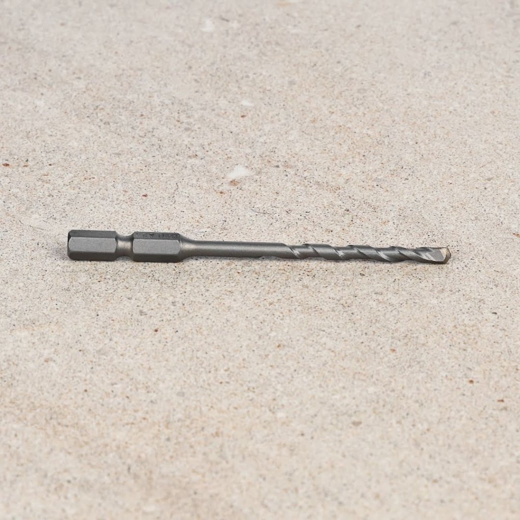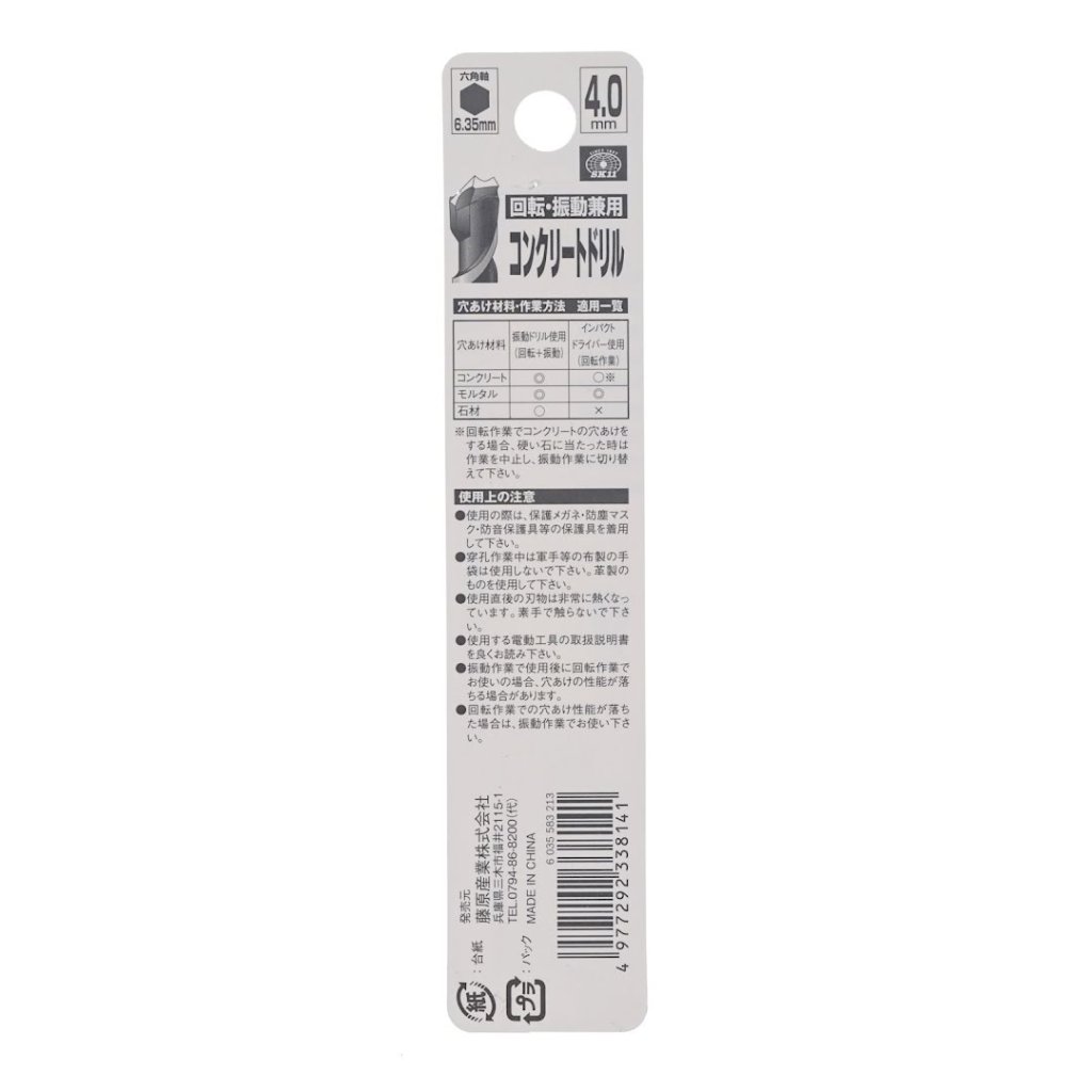 The SK11 Masonry Drill Bit is designed to efficiently drill concrete, block mortar, and stone materials. Its 6.35 mm hexagonal shank is compatible with impact drivers and reduces chuck slippage when used with vibration drills. The sharp tip ensures easy positioning, while the curved scythe shape facilitates quick drilling. It is ideal for both rotation and vibration drilling applications.