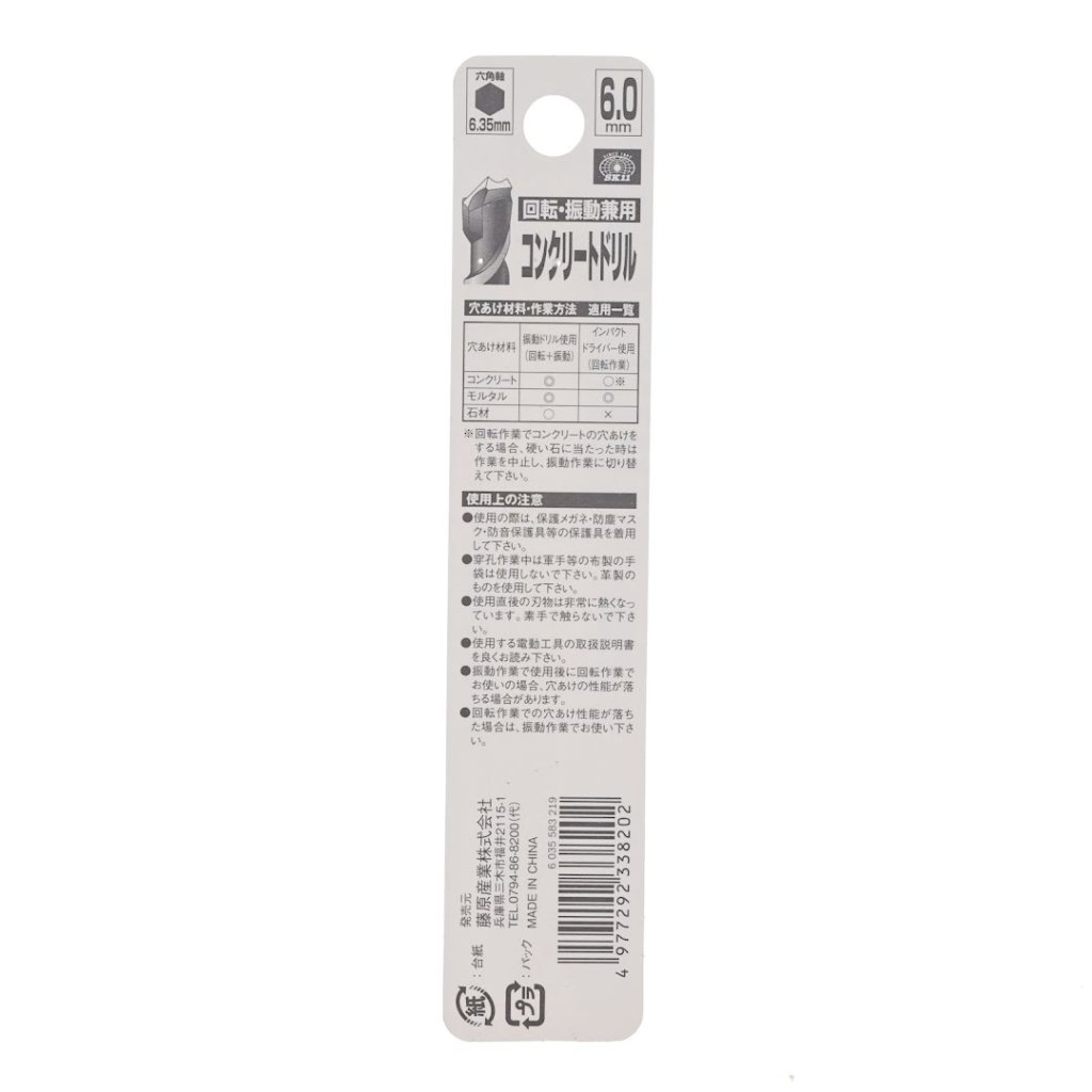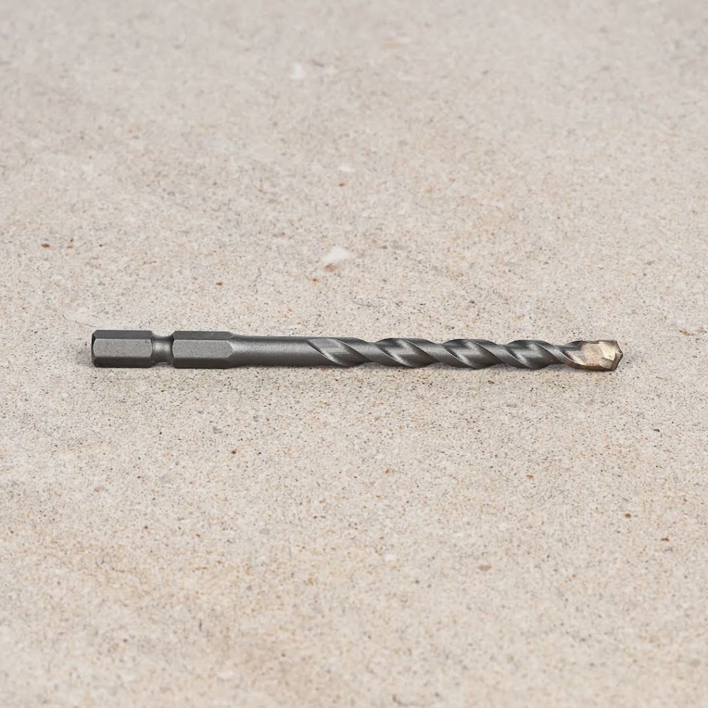 The SK11 Masonry Drill Bit is designed for efficient drilling into concrete, block mortar, and stone materials. Its 6.35 mm hex shank can be easily attached to an impact driver. When used with a hammer drill, it minimizes chuck slippage. The drill bit has a sharp tip for easy positioning and a curved blade shape for fast drilling.