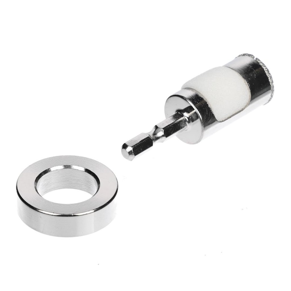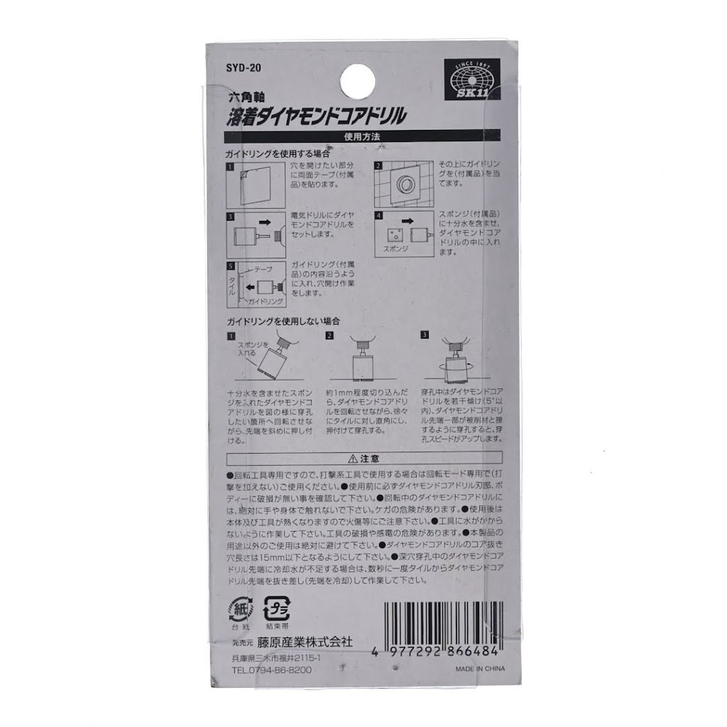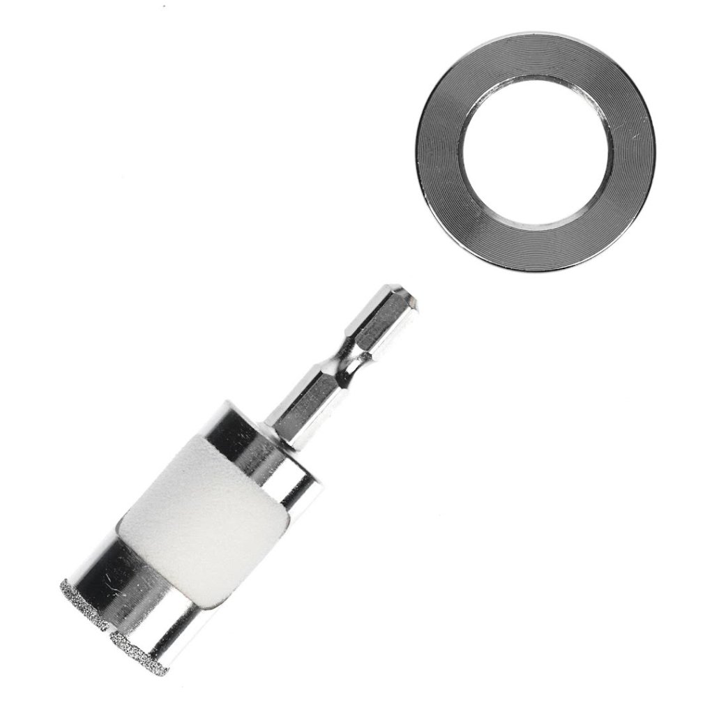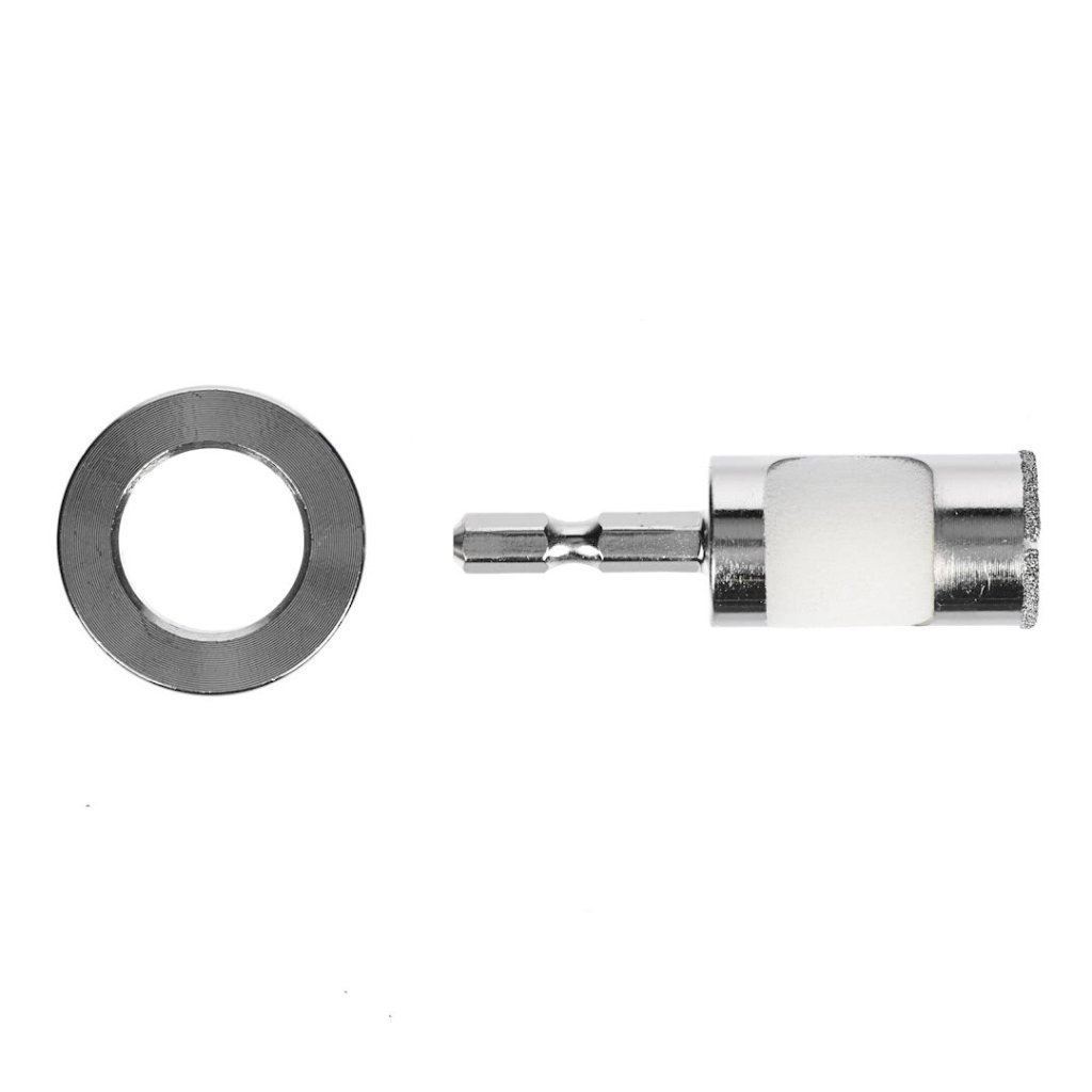 The SK11 Mini Diamond Hole Saw is designed to drill hard materials such as ceramic tiles, stone, and brick precisely. Its hexagonal shank easily fits impact drivers, ensuring low vibration and noise during use. This tool features superior durability due to its welded diamond construction, lasting over ten times longer than carbide drills. Additionally, it includes a guide ring, making it simple for beginners to achieve clean, chip-free holes.