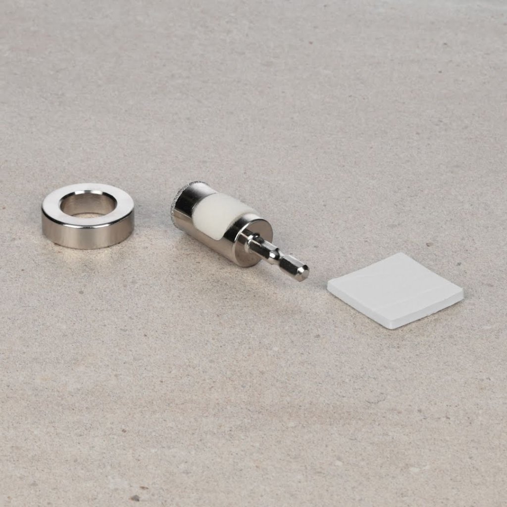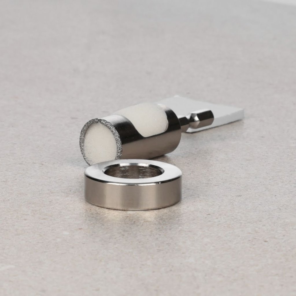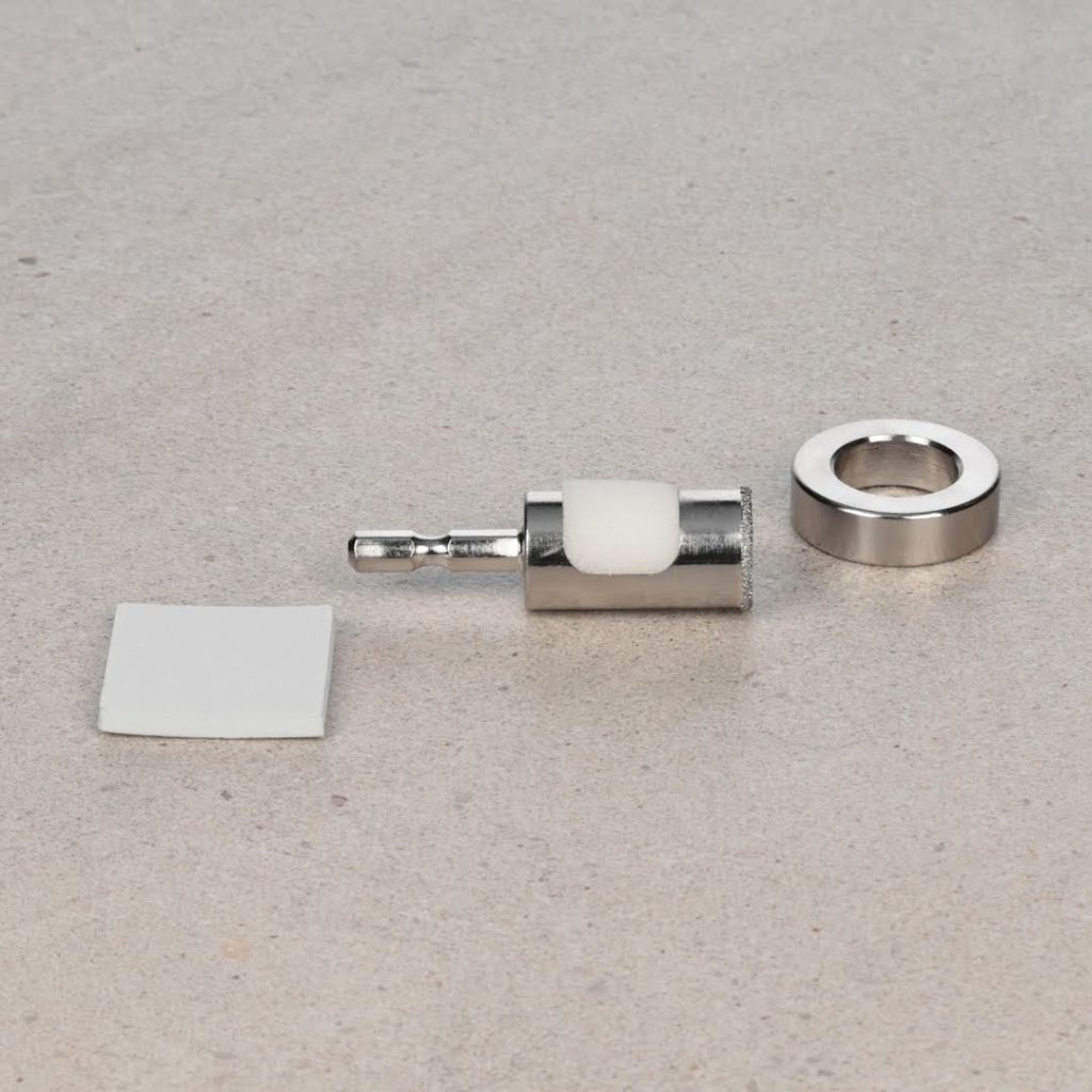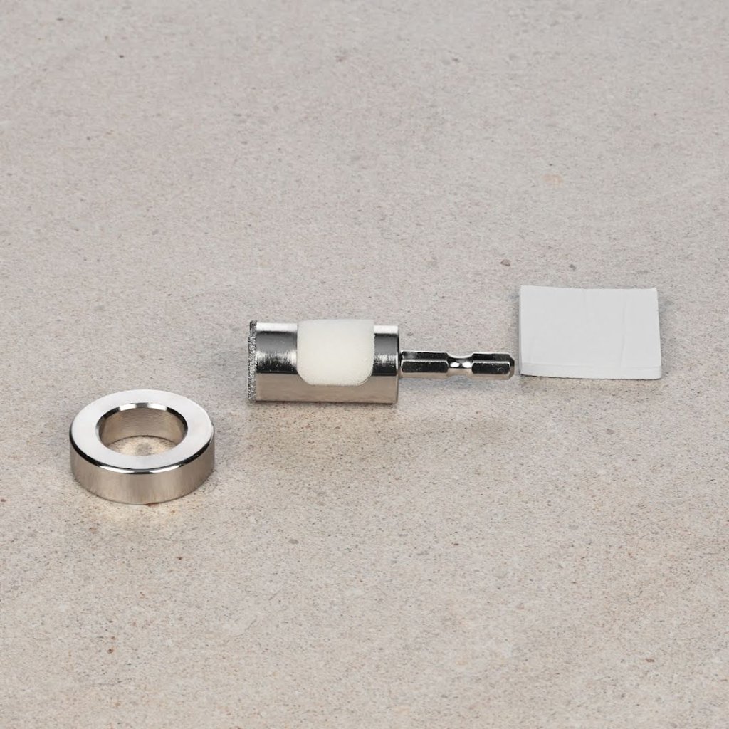 The SK11 Mini Diamond Hole Saw is designed to drill hard materials such as ceramic tiles, stone, and brick precisely. Its hexagonal shank easily fits impact drivers, ensuring low vibration and noise during use. This tool features superior durability due to its welded diamond construction, lasting over ten times longer than carbide drills. Additionally, it includes a guide ring, making it simple for beginners to achieve clean, chip-free holes.