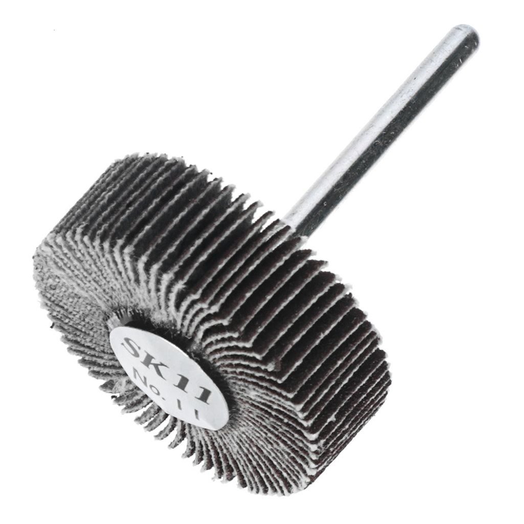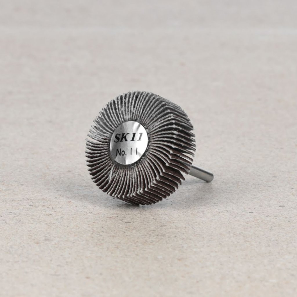 The SK11 Mounted Flap Wheel No.11 is designed to deliver a smooth finish with the abrasive power of sandpaper and suitable elasticity. It is perfect for metal surface polishing, rust removal, paint stripping, and woodworking. Measuring 30mm in diameter with a 3 mm shaft, it fits electric drills and air grinders and operates best under 20000 RPM.