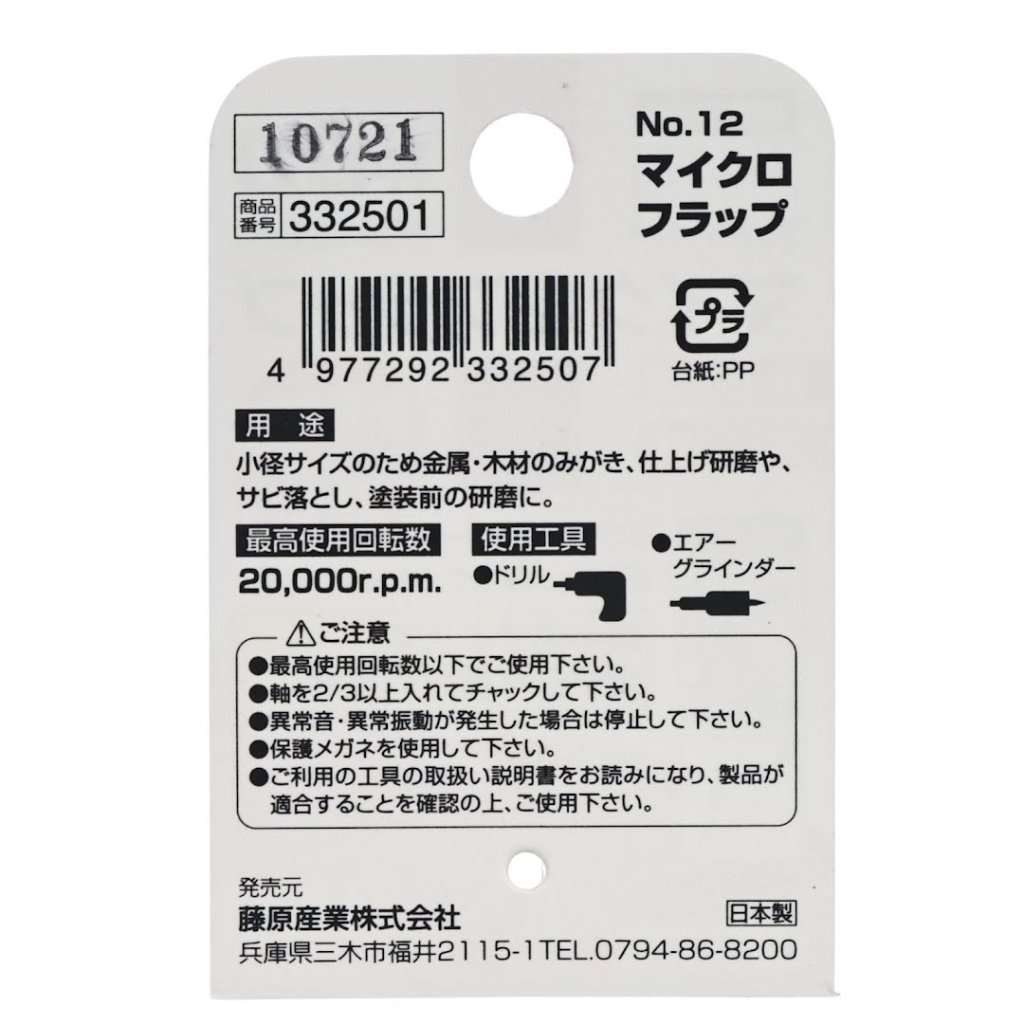 The SK11 Mounted Flap Wheel No.12 is designed to provide smooth finishes on metals and wood with the abrasive power of sandpaper and appropriate elasticity. Due to its small diameter and #80 grit, it is ideal for fine detail work and fits electric drills and air grinders with a 3 mm shank. Use it for rust removal, polishing, and pre-paint sanding to achieve professional results.