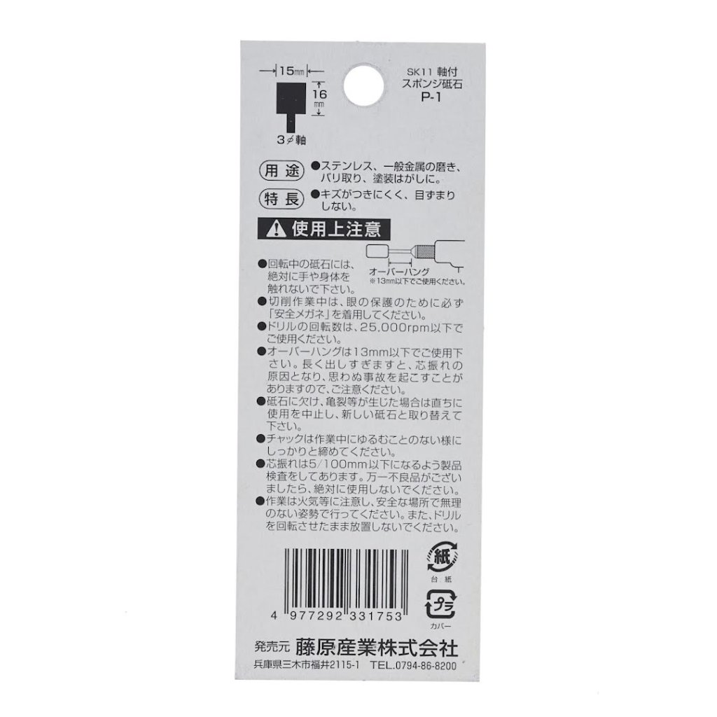 The SK11 Mounted Sponge Abrasive P-2 is ideal for polishing and deburring metals using electric drills.