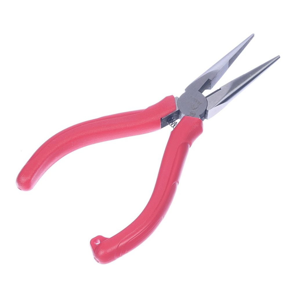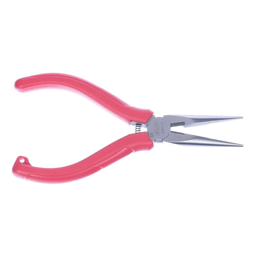 The SK11 Needle-Nose Combination Pliers, model R-150FH, is a versatile tool designed for various applications, including the assembly and wiring of precision instruments. Its dimensions (58 x 163 x 15 mm, weight 150 g) make it a compact yet effective tool for detailed work. It features an original grip that ensures a comfortable and secure fit in the hand, enhancing work efficiency. With a cutting capacity of 1.5 mm for iron wire and 2.6 mm for copper wire and a hardness level of HRC 57-61 thanks to its non-oxidizing heat treatment and high-frequency quenching of the blade, this plier is equipped to cut, grip, and bend materials with precision and ease. Please use this tool only for its intended purpose, ensure safety precautions are taken, and wear protective glasses during use.