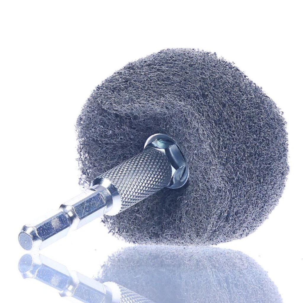 The SK11 Non-Woven Abrasive Ball with #400 grit is designed for easy and efficient cleaning and rust removal when attached to an electric drill. Its 50 mm diameter head fits into small spaces, making it perfect for detailed work on metal and wood surfaces. The ball's material is durable yet gentle, removing stubborn dirt and rust without damaging the base material. Compatible with impact drivers thanks to its 6.35 mm hex shaft, this tool combines flexibility with performance, offering a hassle-free cleaning solution.