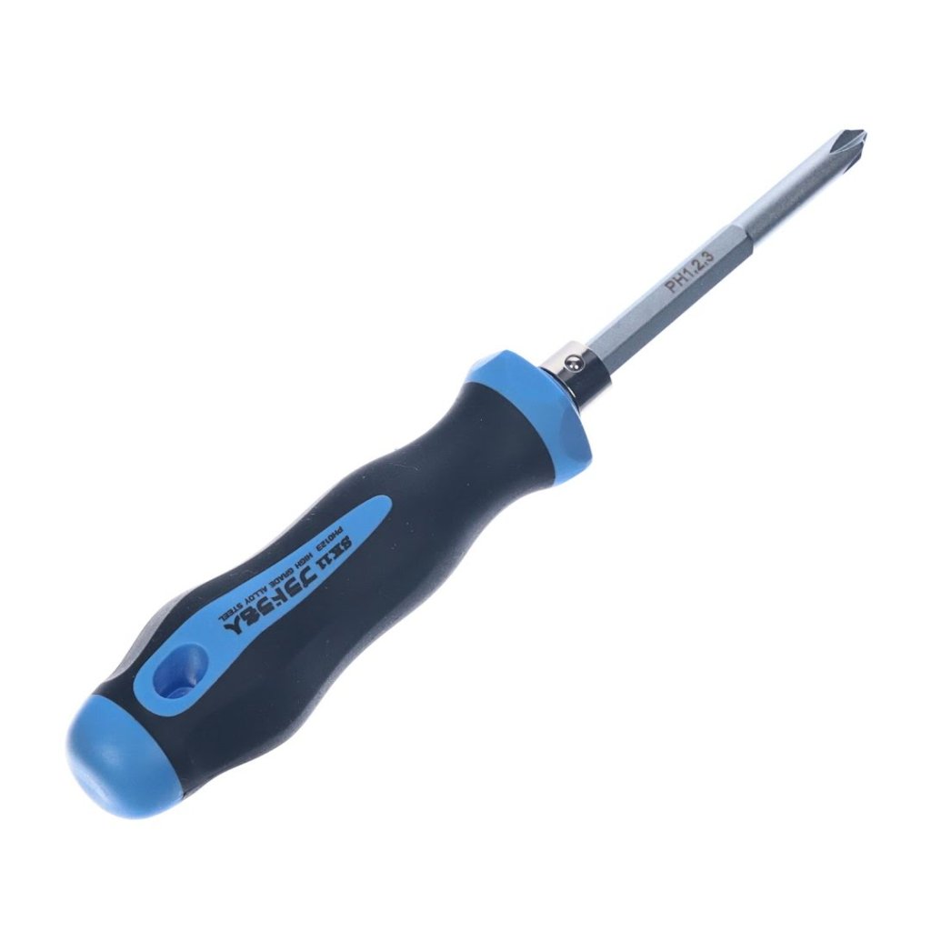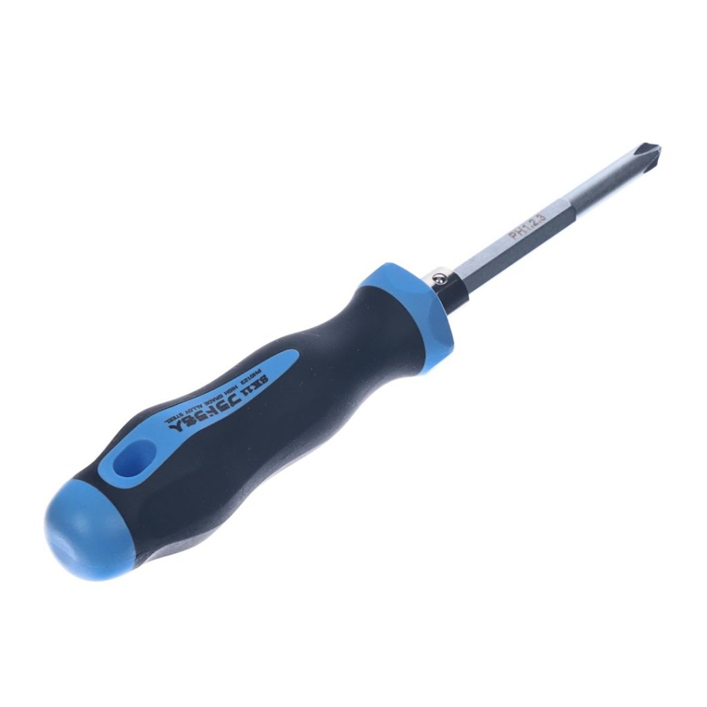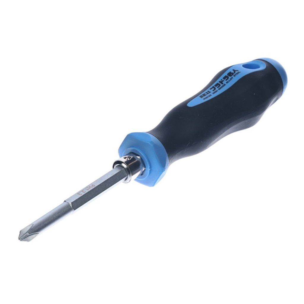 The SK11 Phillips Screwdriver, model No.800-0123, is a versatile tool for professionals and DIY enthusiasts. Made from durable materials, it features a precisely engineered tip that ensures a perfect fit with Phillips screws, reducing the risk of stripping. The ergonomic handle is designed for comfort during prolonged use, providing a secure and non-slip grip that enhances control and accuracy. Whether assembling furniture, working on electronics, or tackling general repairs, this screwdriver offers reliability and ease of use for various applications. Its robust construction ensures long-lasting performance, making it a valuable addition to any toolkit.