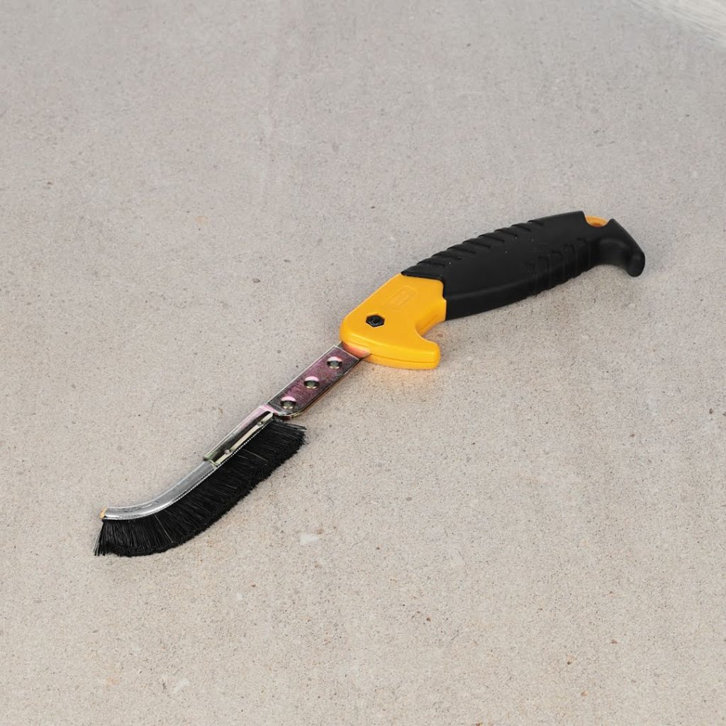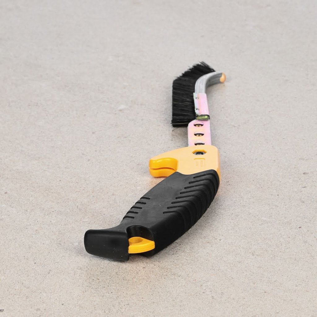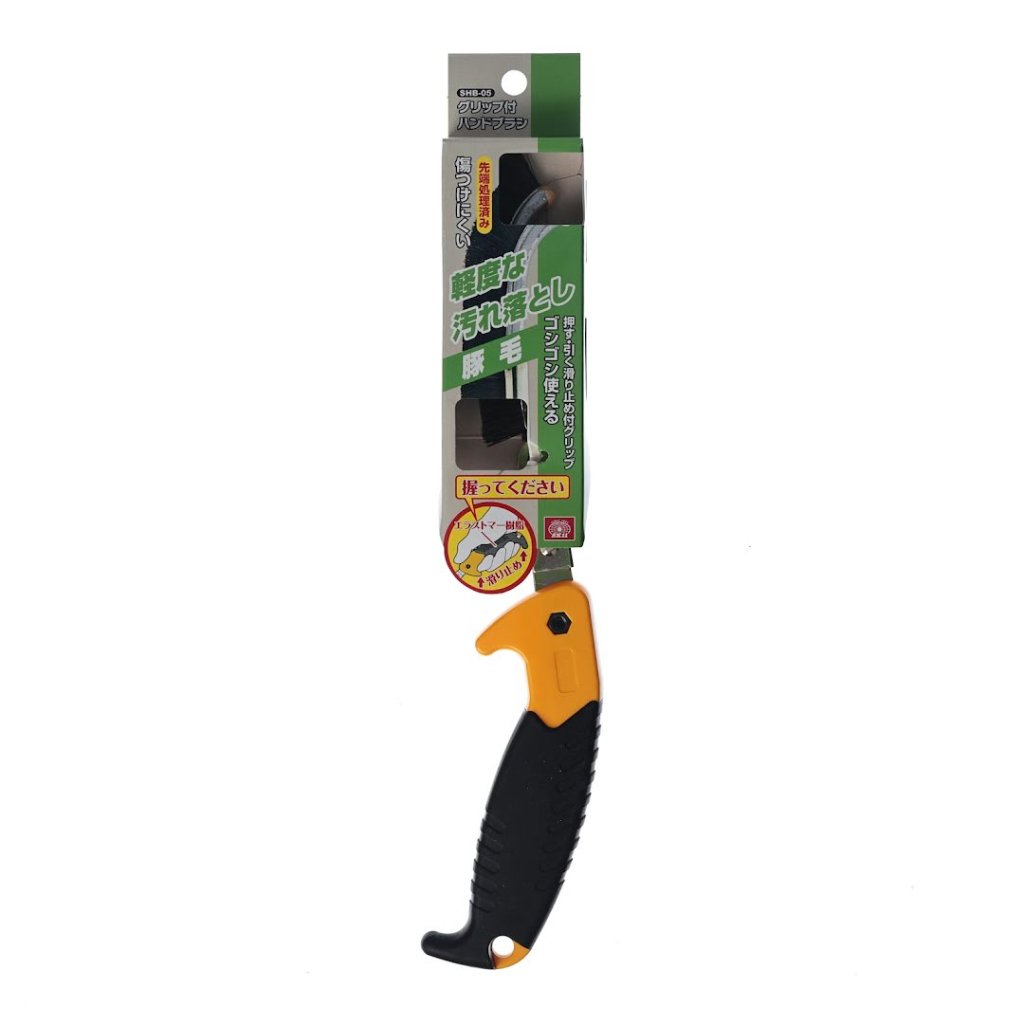 The SK11 Pig Bristle Brush Grip, model SHB-05, is designed for comfortable and efficient cleaning of light dirt. This hand brush features an ergonomic grip that reduces fatigue during prolonged use. The brush's tips are coated with resin to prevent surface damage, and its dense bristles enhance cleaning efficiency. Ideal for various cleaning tasks, the brush measures 60 mm in width, 265 mm in height, and 15 mm in depth, with a brush length of 95 mm and a weight of 73 g.