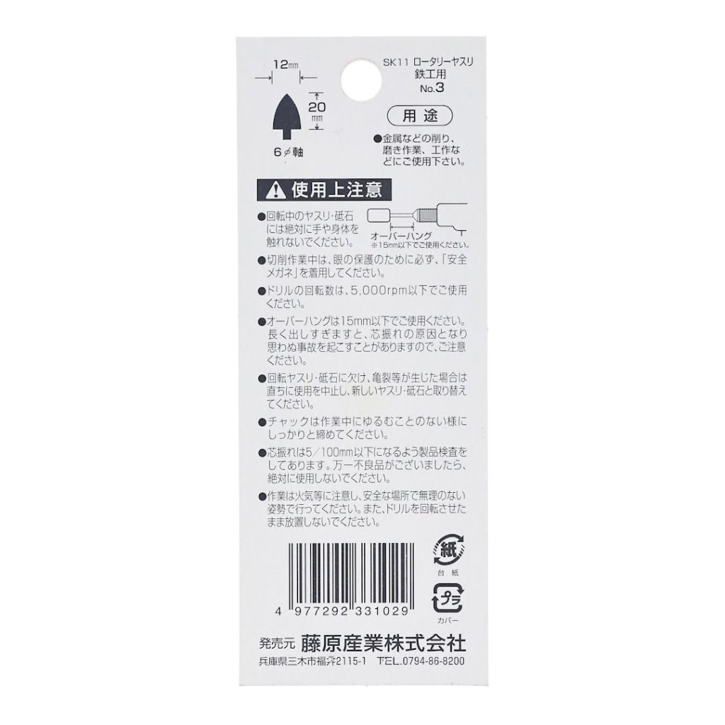 The SK11 Pointed Tree Rotary Burr No.3 is ideal for grinding and polishing tasks on metal, light metal, and wood materials. Designed for use with electric drills and air grinders, this tool ensures versatile applications in various DIY projects. The burr has a shaft diameter of 6 mm and a stone size of 12 x 20 mm, making it suitable for precise work. Please operate it at a rotation speed of 5000 RPM or below for optimal performance.