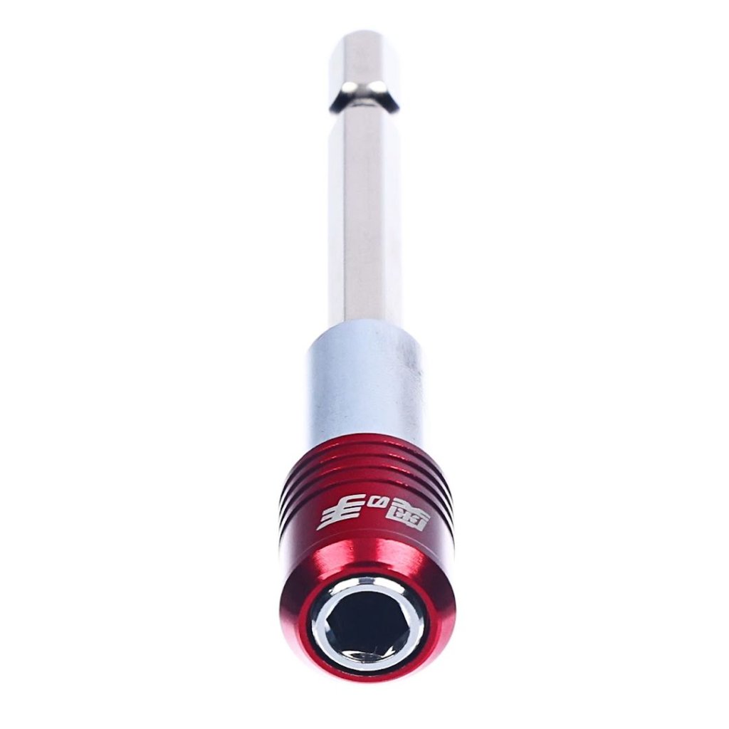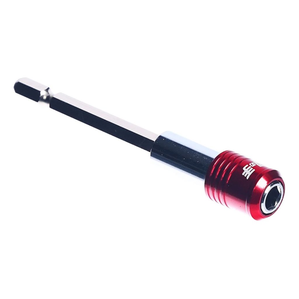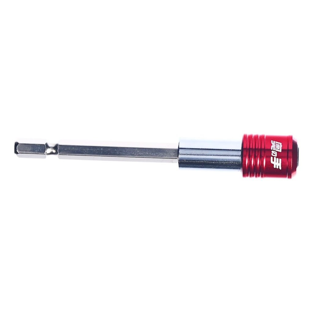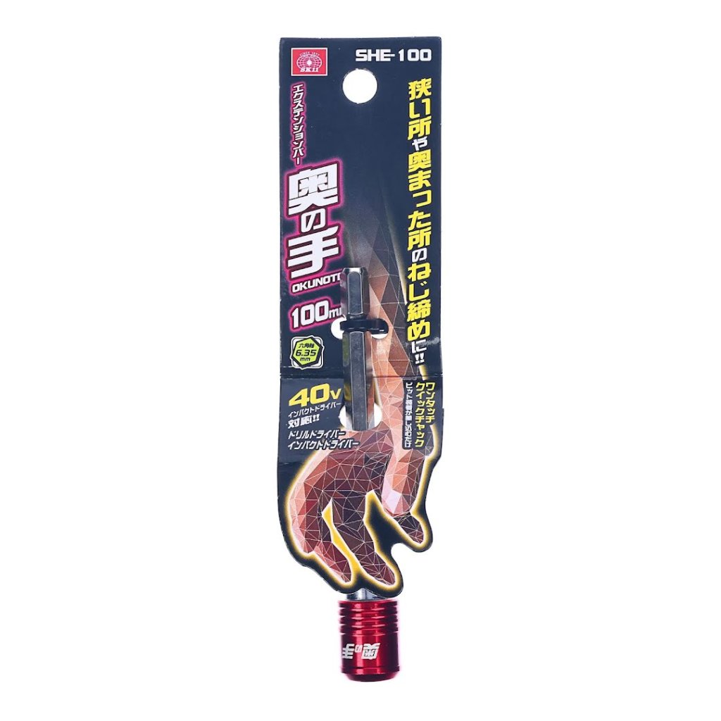 The SK11 Quick Release Bit Extension, model SHE-100, is designed to extend reach in narrow or recessed spaces where a bit alone cannot reach. Featuring a one-touch quick chuck, it allows for easy bit attachment with a simple push. This extension bar is compatible with 40 V cordless impact drivers, making it a versatile addition to any toolkit. With a total length of 100 mm and a weight of 42 g, it is both lightweight and practical for various screw-tightening tasks.