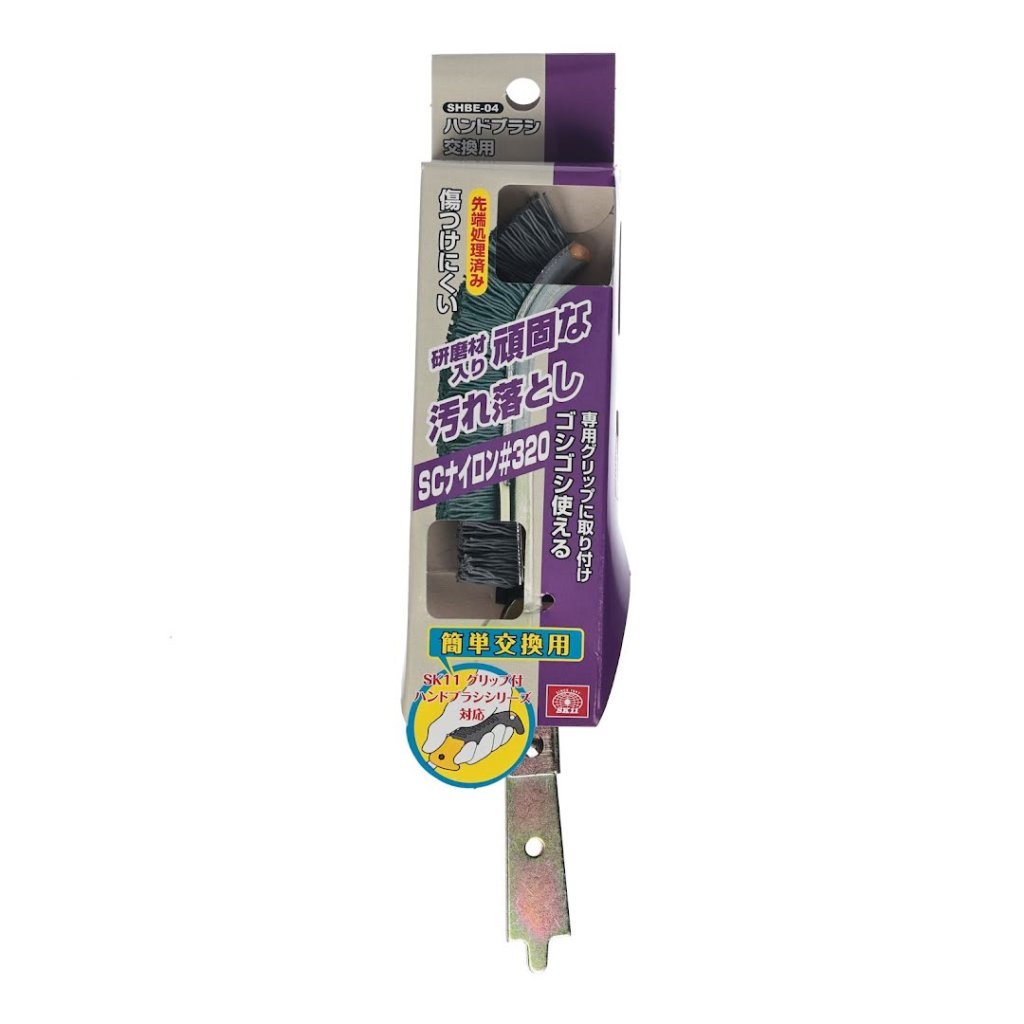 The SK11 Replacement Wire Brush, model SHBE-04, is a versatile and efficient tool for rigorous cleaning tasks. This hand brush features a 95 mm nylon brush head with a 0.6 mm wire diameter. The brush tips are coated with resin to prevent surface damage, ensuring effective yet gentle cleaning. Ideal for use as a replacement part for the SHB series of hand brushes, it enhances work efficiency with its dense bristle configuration.