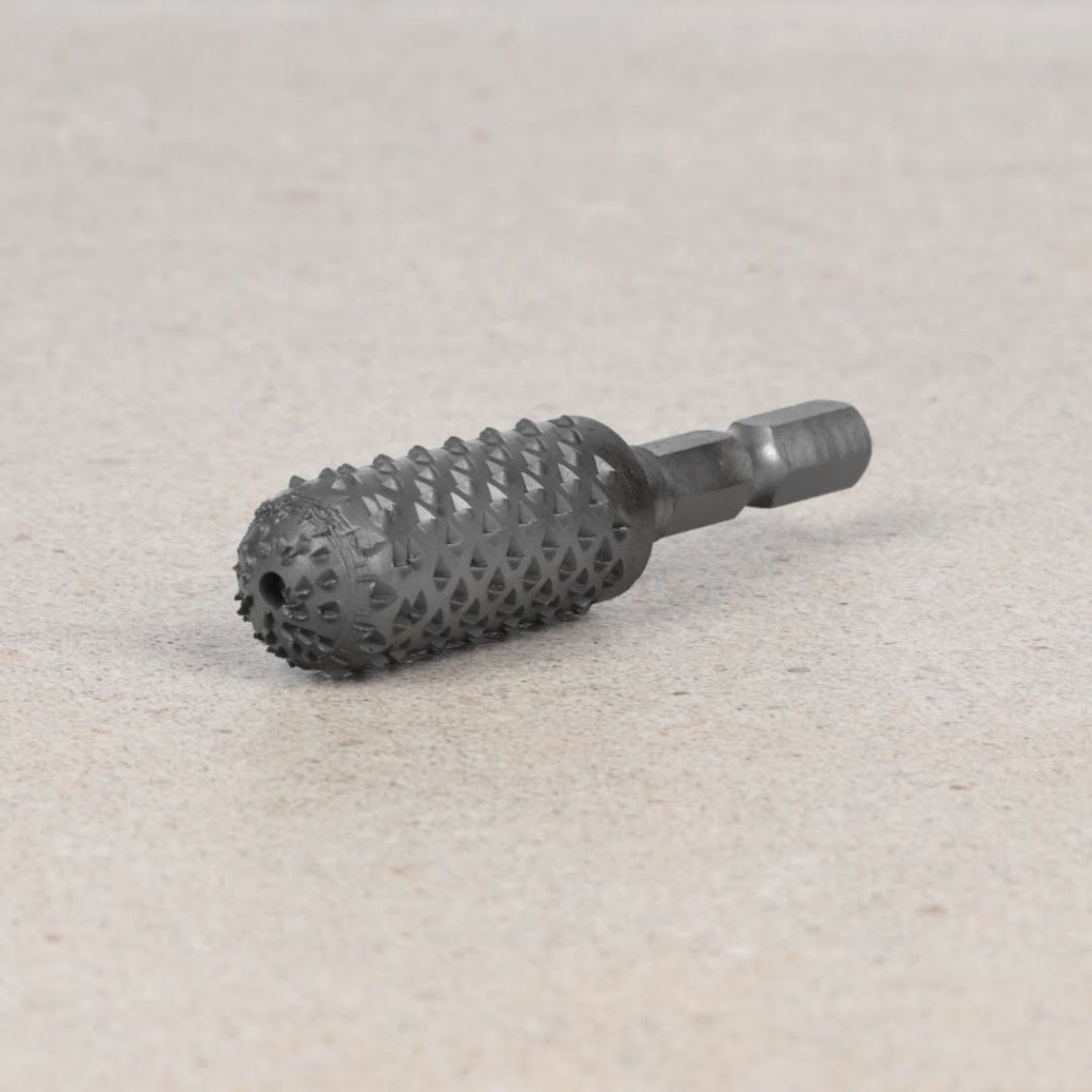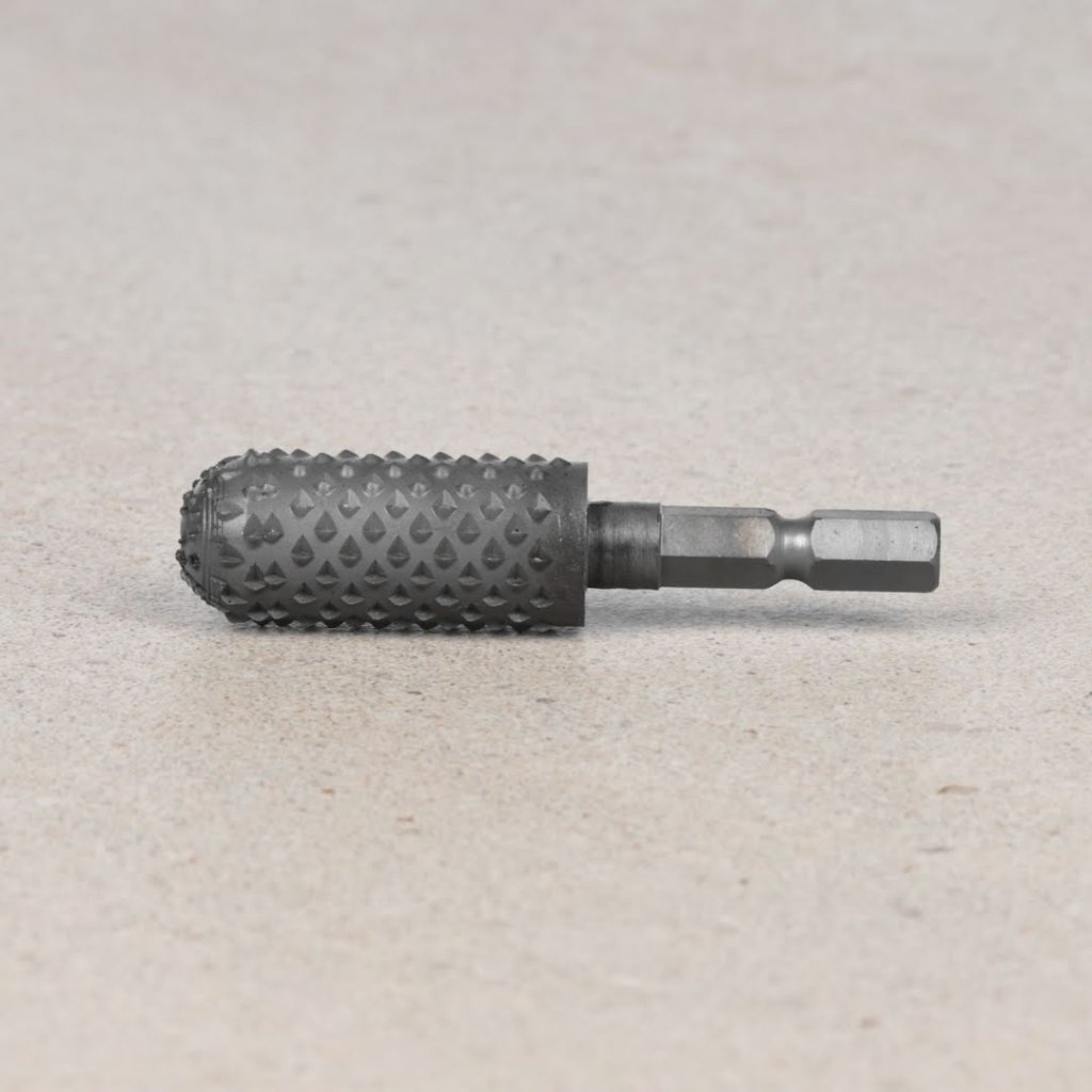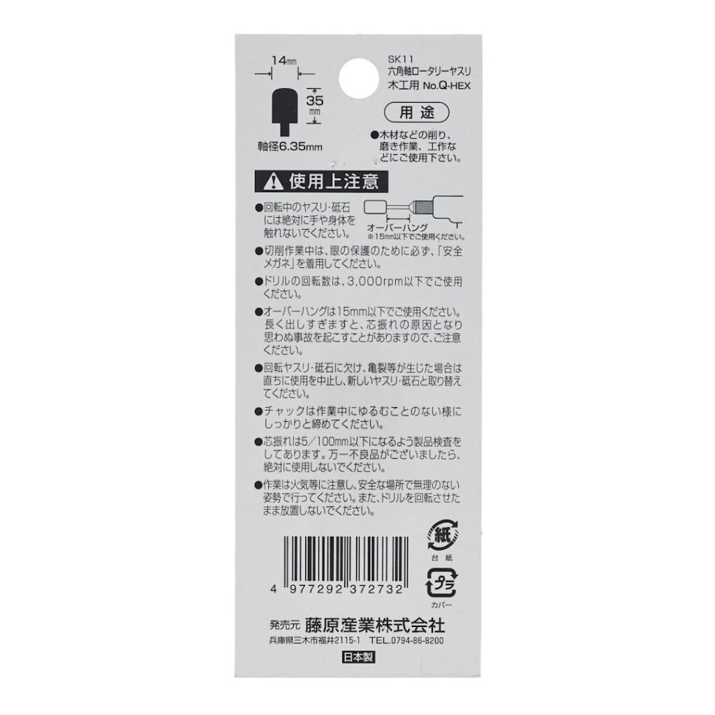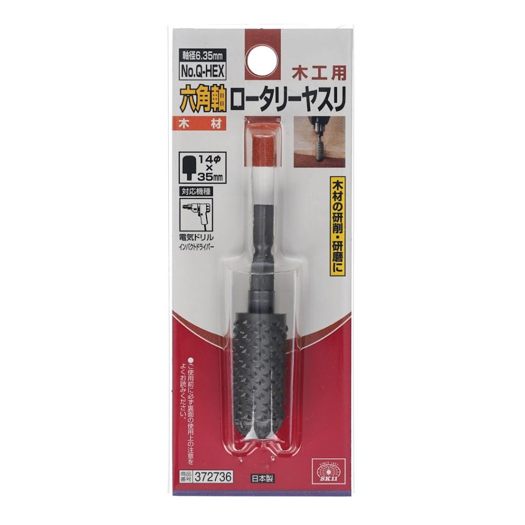 The SK11 Round Head Cylinder Rotary Burr, model No.Q-HEX, is ideal for shaving and polishing wood. It features a 6.35 mm hex shank and can be easily attached to impact drivers. The burr measures 14 x 35 mm and operates at a drill rotation speed of 3000 RPM or less. Perfect for detailed woodworking projects, this rotary burr ensures precision and efficiency.