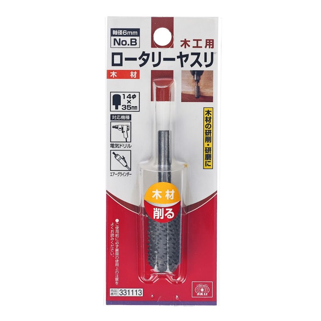 The SK11 Round Head Cylinder Rotary Burr, model No.B, is an essential tool for shaping, grinding, and polishing wood. Designed for use with electric drills and air grinders, this rotary burr features a 6 mm shank diameter and a 14 mm grinding stone width, making it ideal for precise woodworking tasks. Keep the overhang within 15 mm and operate at a maximum speed of 10000 RPM for optimal performance and safety.