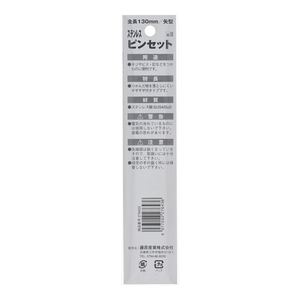 The SK11 Screw Holding Tweezers, model No.13, are designed for hobby and precision work. With a length of 130 mm and a total weight of 24 g, these tweezers feature a serrated grip that makes it easy to handle small objects like screws, nails, and bolts without dropping them. The product dimensions are 10 x 125 x 7 mm.