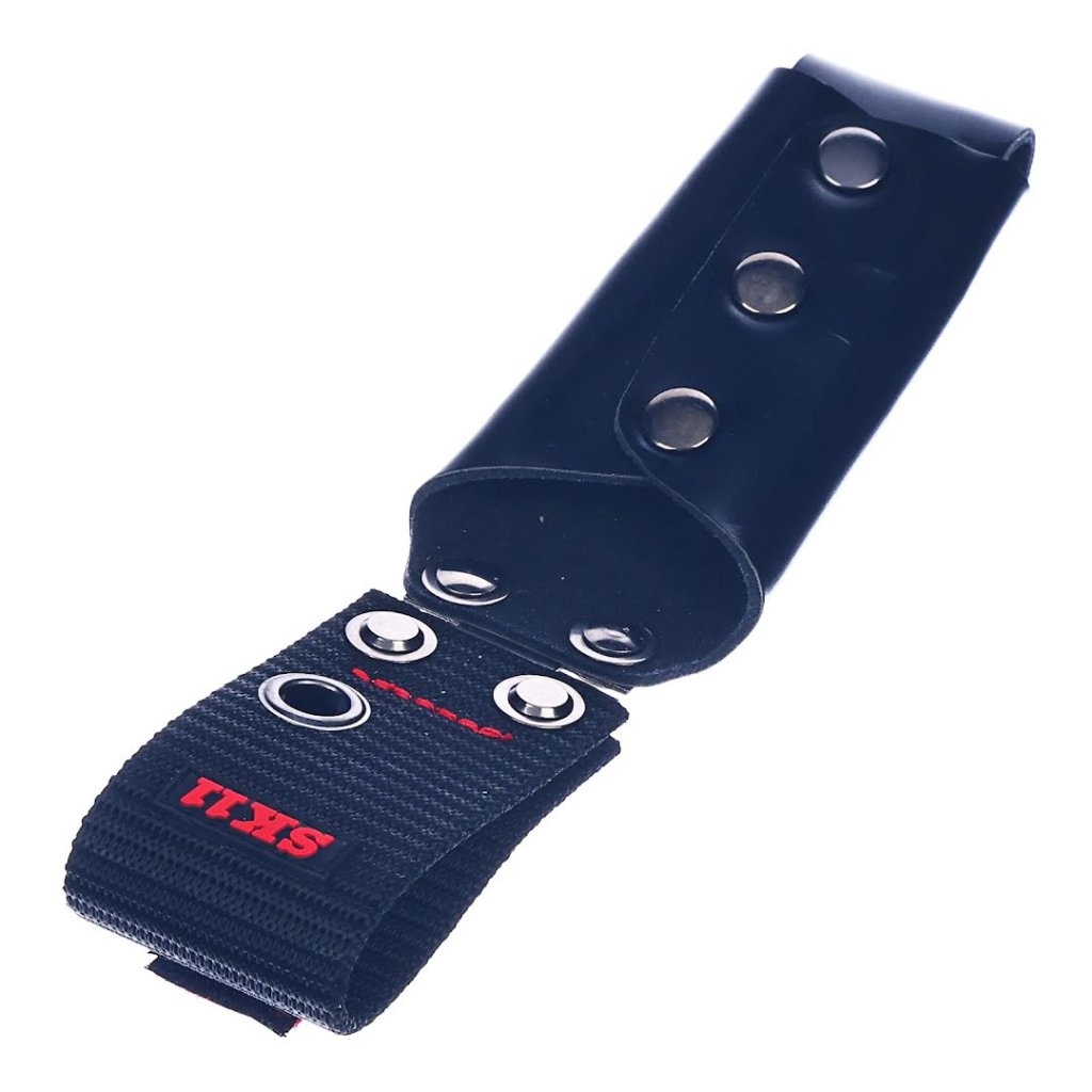 The SK11 Snap-Off Knife Pouch, model STH2-8, is a versatile tool holder designed for easy storage and portability of your tools. This detachable tool holder features a removable loop belt system that makes it simple to attach and detach from your belt. With dimensions of 60 mm in width, 230 mm in height, and 40 mm in depth, it is compact yet spacious enough for your essential tools. The pouch fits belts up to 60 mm in width and weighs just 92 grams, making it a lightweight and practical addition to any toolkit.