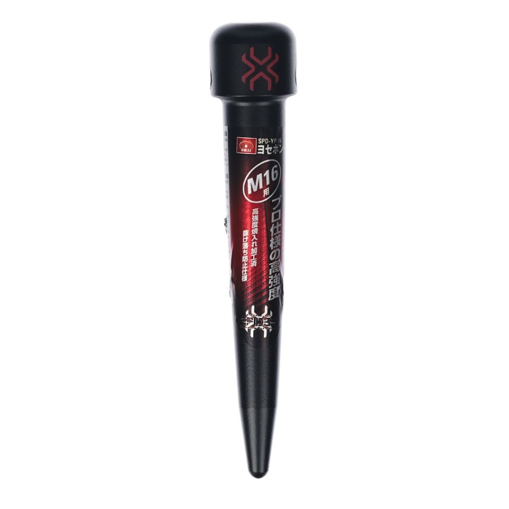 The SK11 SPIDER Japanese Broad Head Alignment Punch, model SPD-YP-16, is a high-strength tool designed for professional use. With dimensions of 23 mm width, 130 mm height, and 23 mm depth, and weighing 215 g, it is perfect for aligning holes in structural steel and steel plates before fixing with rivets or bolts. This punch features a large striking surface for easier hammering and a design that prevents it from falling out of holes. It includes an M16 bolt hole and a hole for attaching a fall prevention cord. The entire neck is heat-treated for added durability.